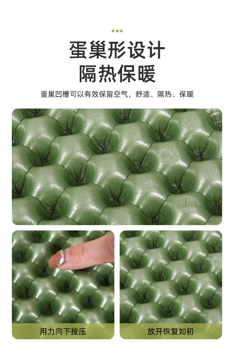 还没用呢,但感觉应该不错,摸了下感觉质地很软。之前没有垫子没地方坐,带椅子又麻烦,在朋友推荐下试试蛋壳垫,希望给我的户外生活更舒服