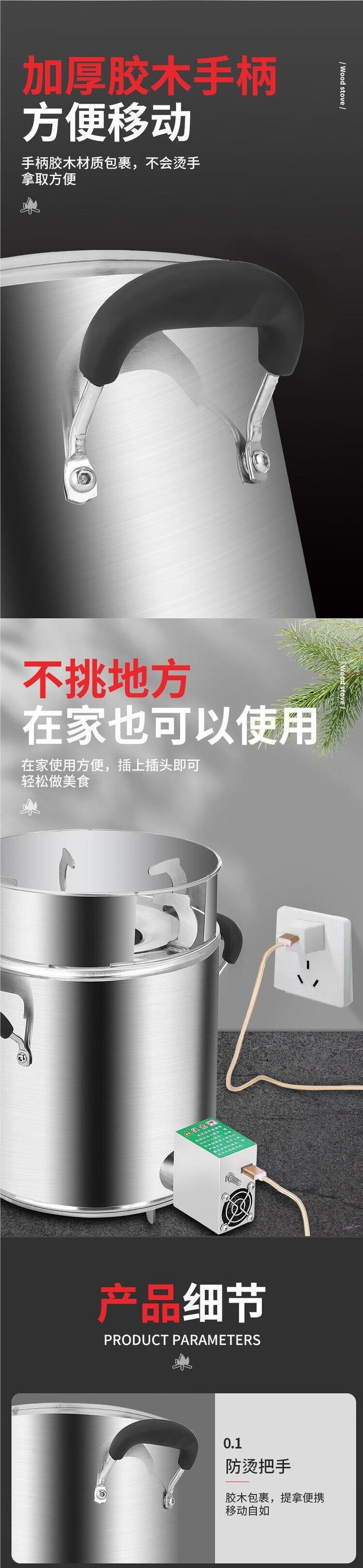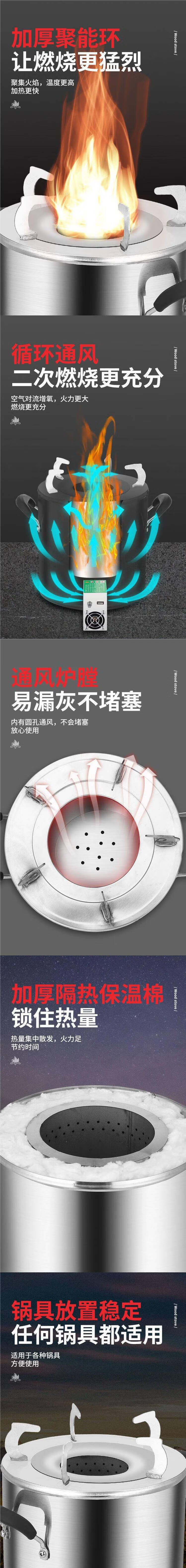 柴火灶节能家用木材气化炉农村无烟便携不锈钢野炊户外柴火炉 柴火炉+鼓风机+大礼包