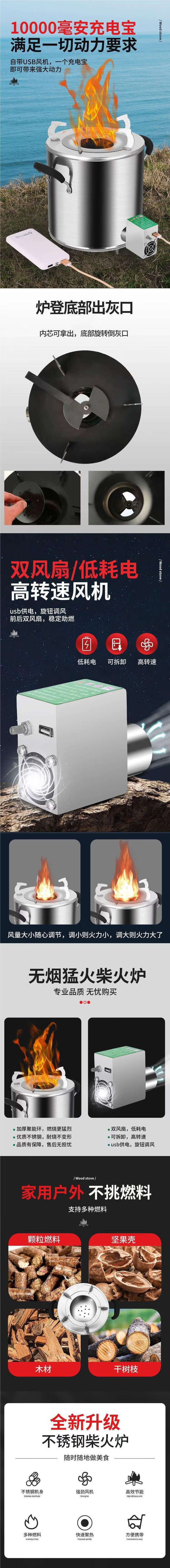 户外柴火炉便携式露营野炊多功能柴火炉农村家用小型气化炉柴火炉 登山炉+USB鼓风机