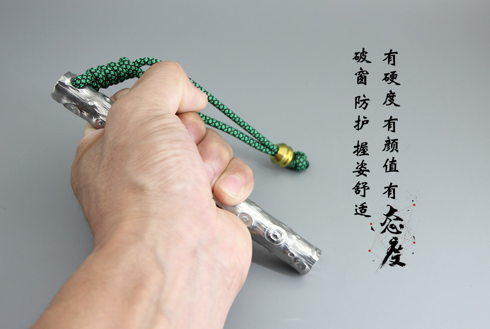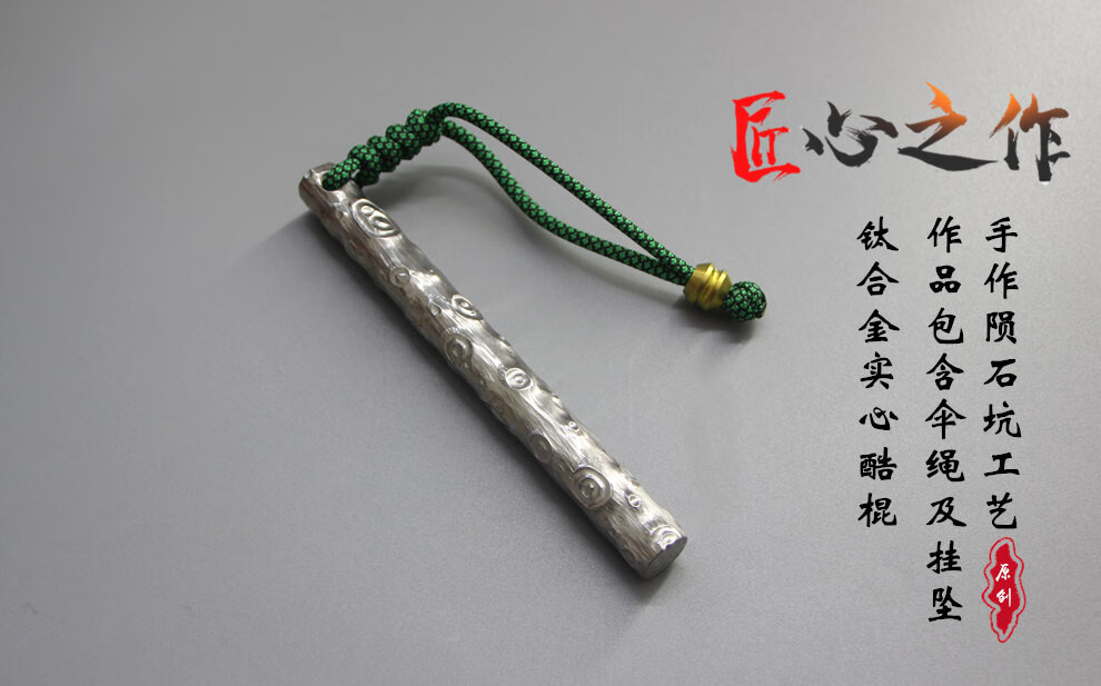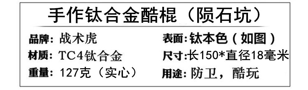 战术虎钛合金酷棍TC4实心K棍钛钢自卫破窗救援救生军迷钥匙链户外男士工具携带短棍手工陨石坑高颜值钛棒