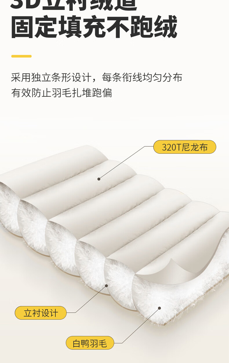 质量特别差,里面的羽毛会钻出来 而且量很大,睡一晚上全身扎满羽毛,而且会过敏,身上起皮肤病