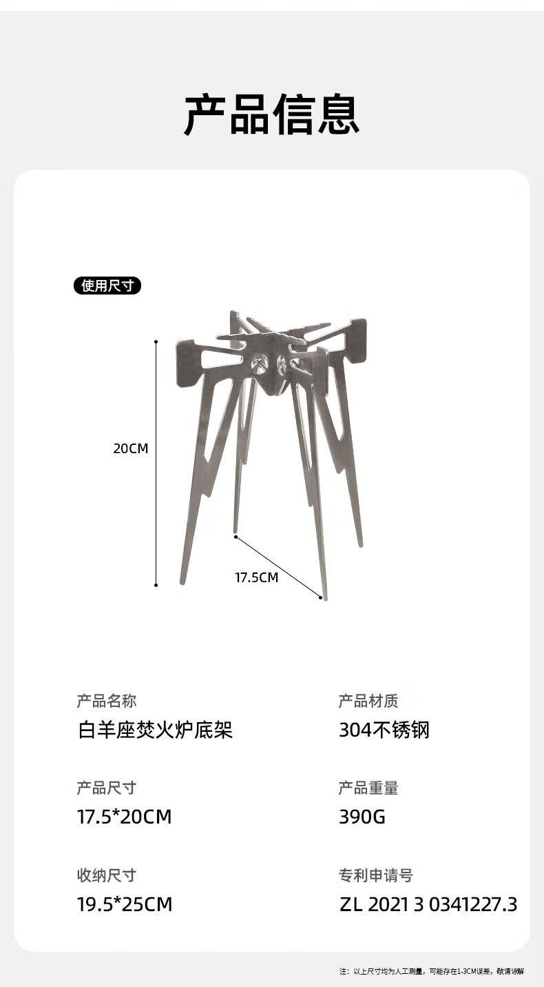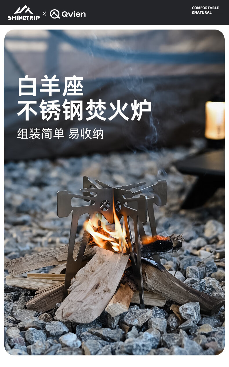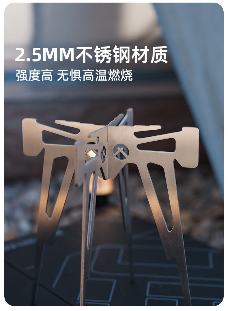 山趣(ShineTrip)户外QV白羊座焚火炉架露营野炊取暖烧水架不锈钢便携拆卸支架 不锈钢原色