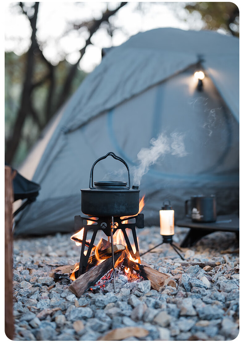 比格之火【火柴盒】户外柴火灶迷你桌面柴火炉露营野餐取暖炉精致观火炉 黑金(不含水壶) 取暖炉模式(带烟管)