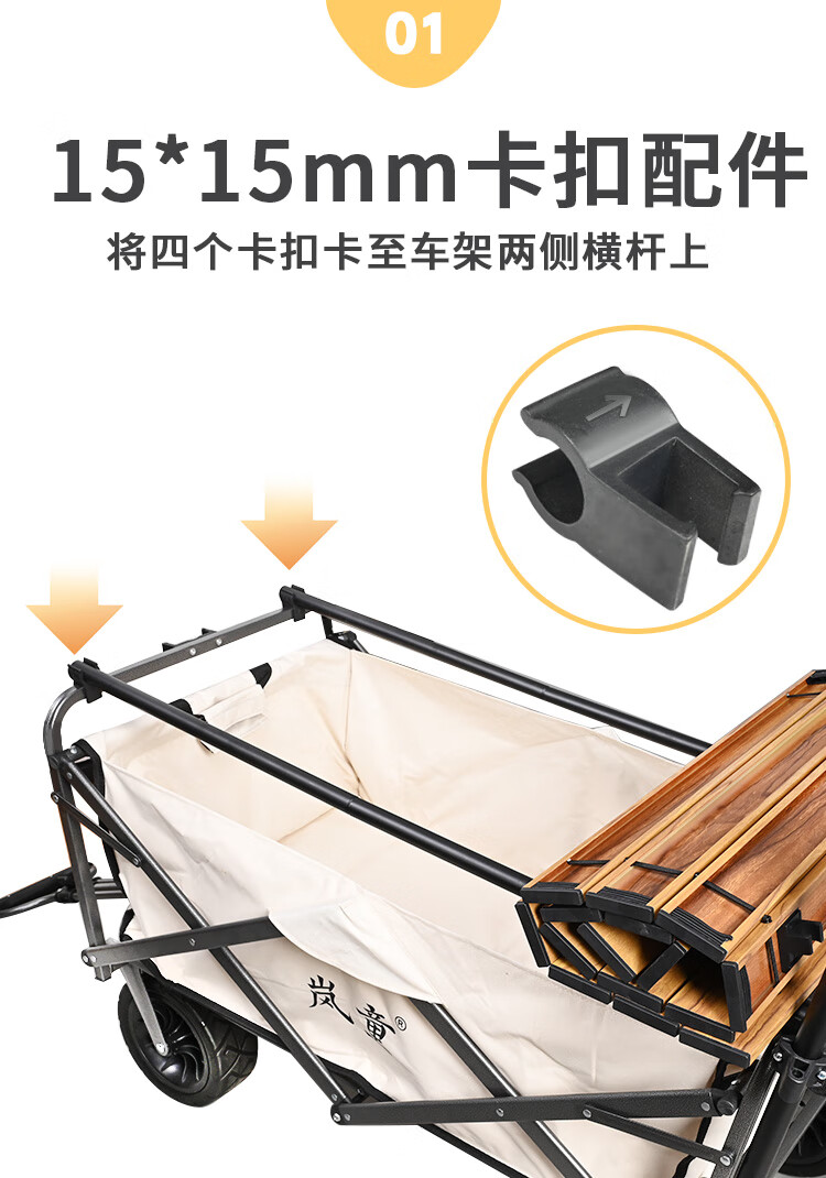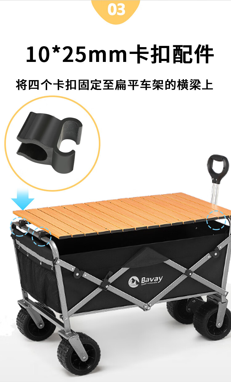 糜岚(MieLanat)可扩展桌板摆摊推车露营车营地车桌面便携式野餐车桌板可折叠桌面 8mm螺丝卡扣 大号110cm横杆+卡扣