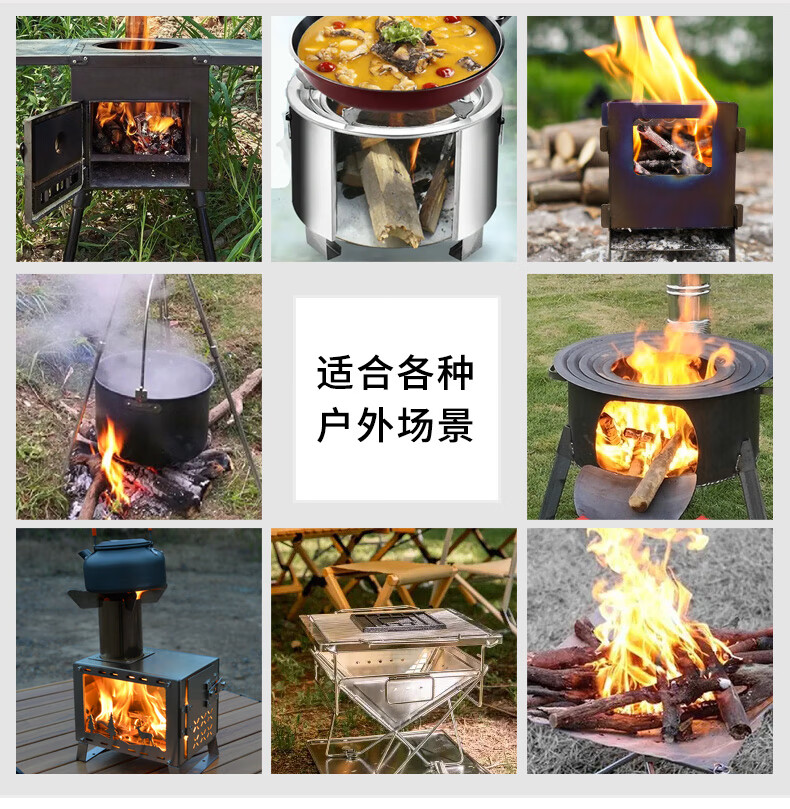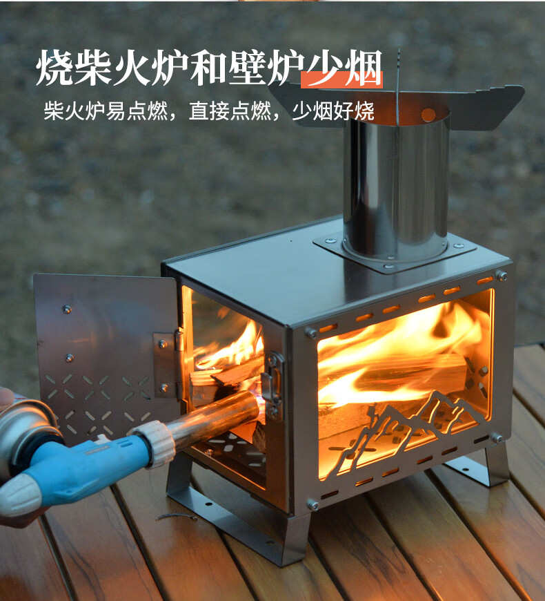 荒野猎人户外真火壁炉颗粒露营帐篷室内取暖观火煮茶304柴火炉灶 城堡.壁炉--标配