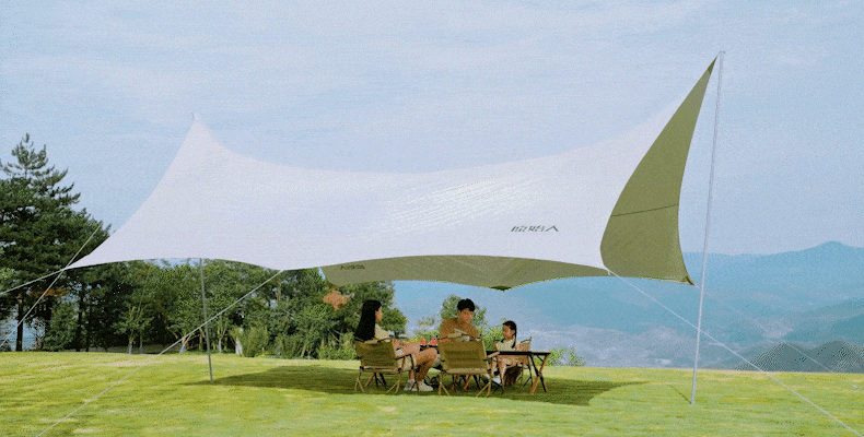 牧高笛(MOBIGARDEN)俊庭黑胶天幕 户外露营蝶形防晒遮阳布防雨大空间黑胶天幕 俊庭黑胶PO520天幕*1+月亮椅*4+碳钢蛋卷桌L套餐