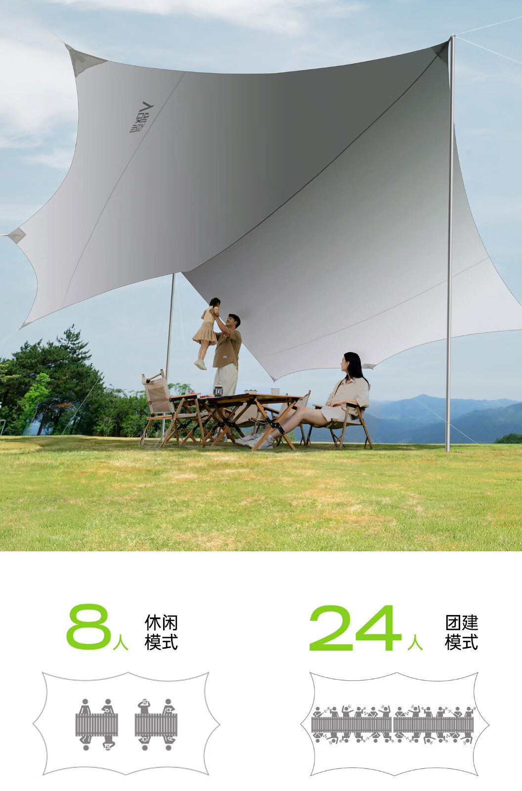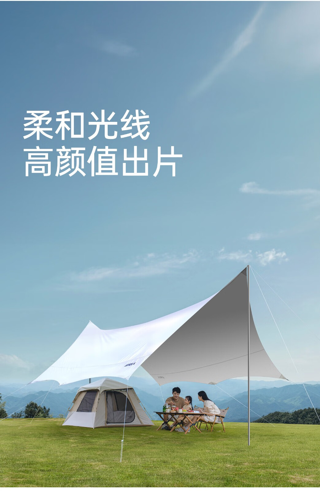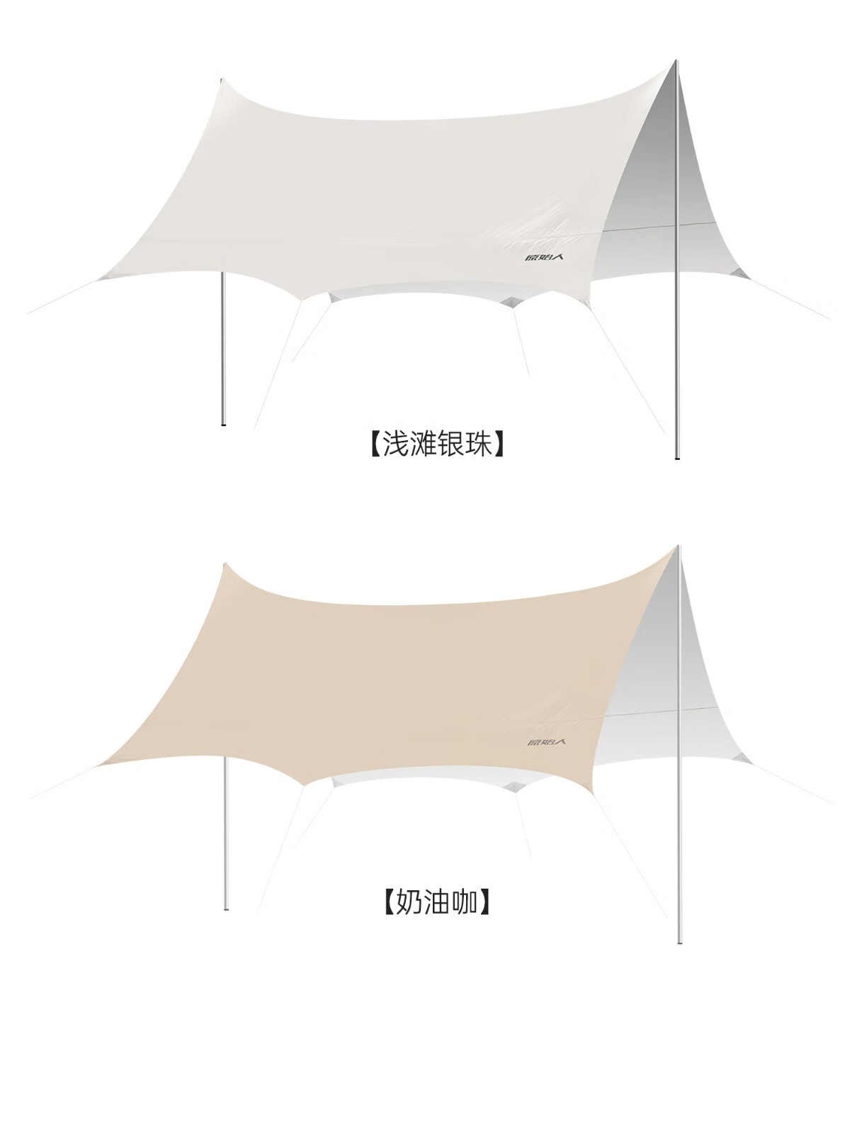 原始人天幕帐篷户外专业防晒黑胶涂层沙滩遮阳棚桌椅露营装备全套 (30平)奶油咖【2-16人】
