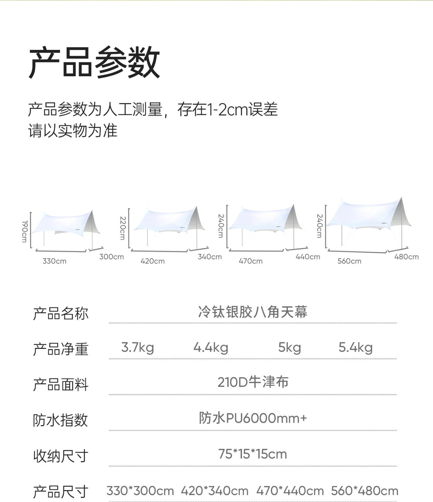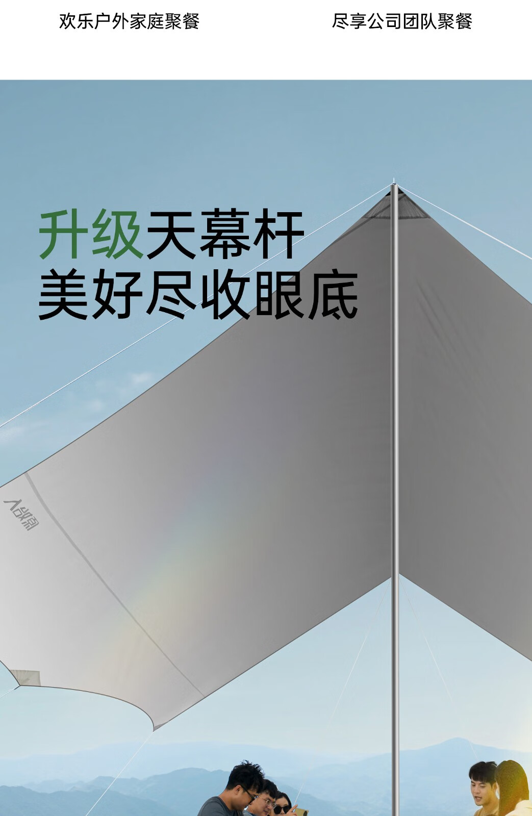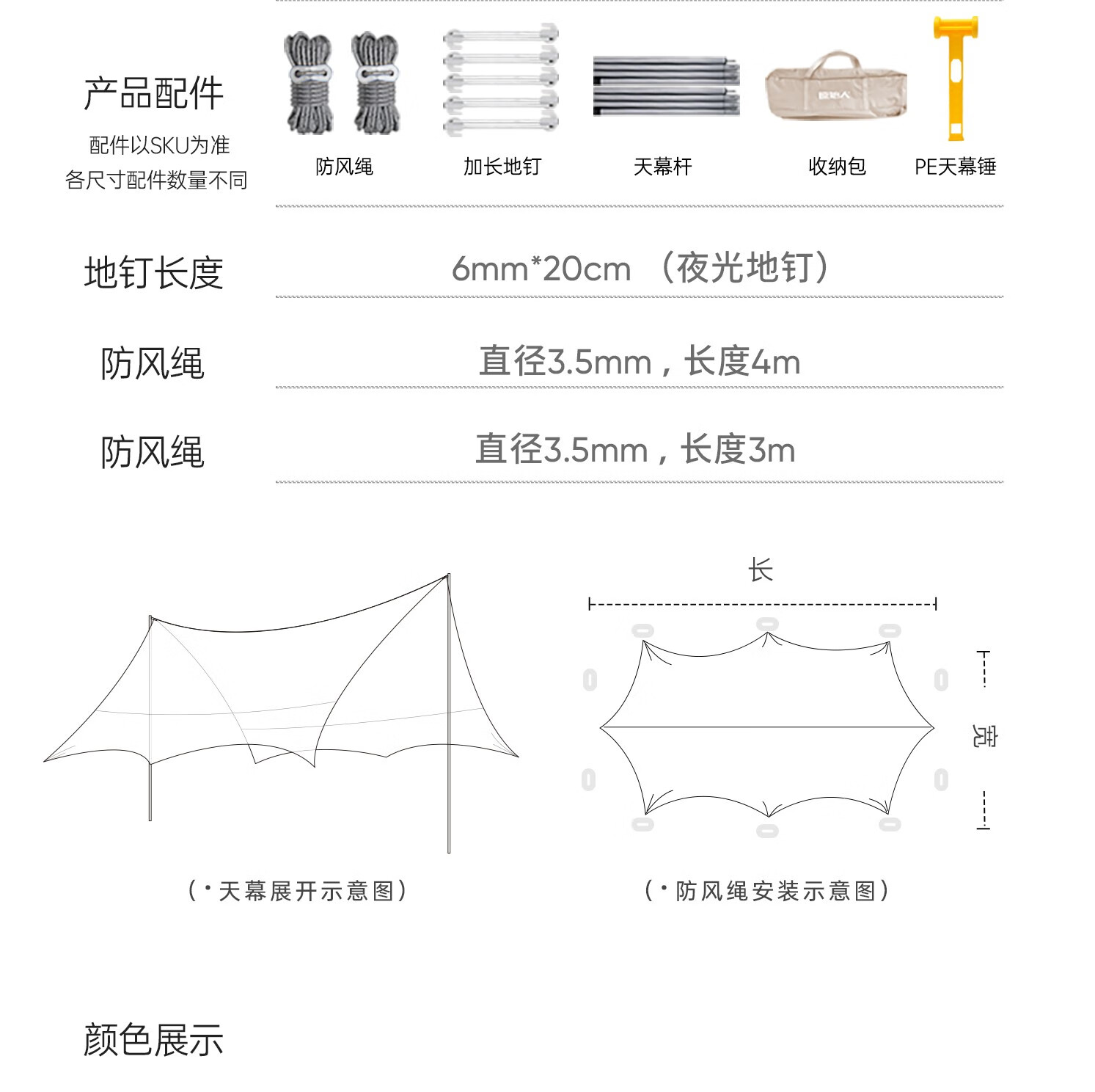 原始人天幕帐篷户外专业防晒黑胶涂层沙滩遮阳棚桌椅露营装备全套 (30平)奶油咖【2-16人】