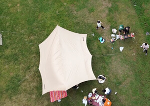 颜值看着还可以,遮阳效果也不错,展开后大概能容纳七八个人,在风和日丽的天气出行,配上烧烤,烤肉烤肠,在湖边嬉闹是个不错的选择