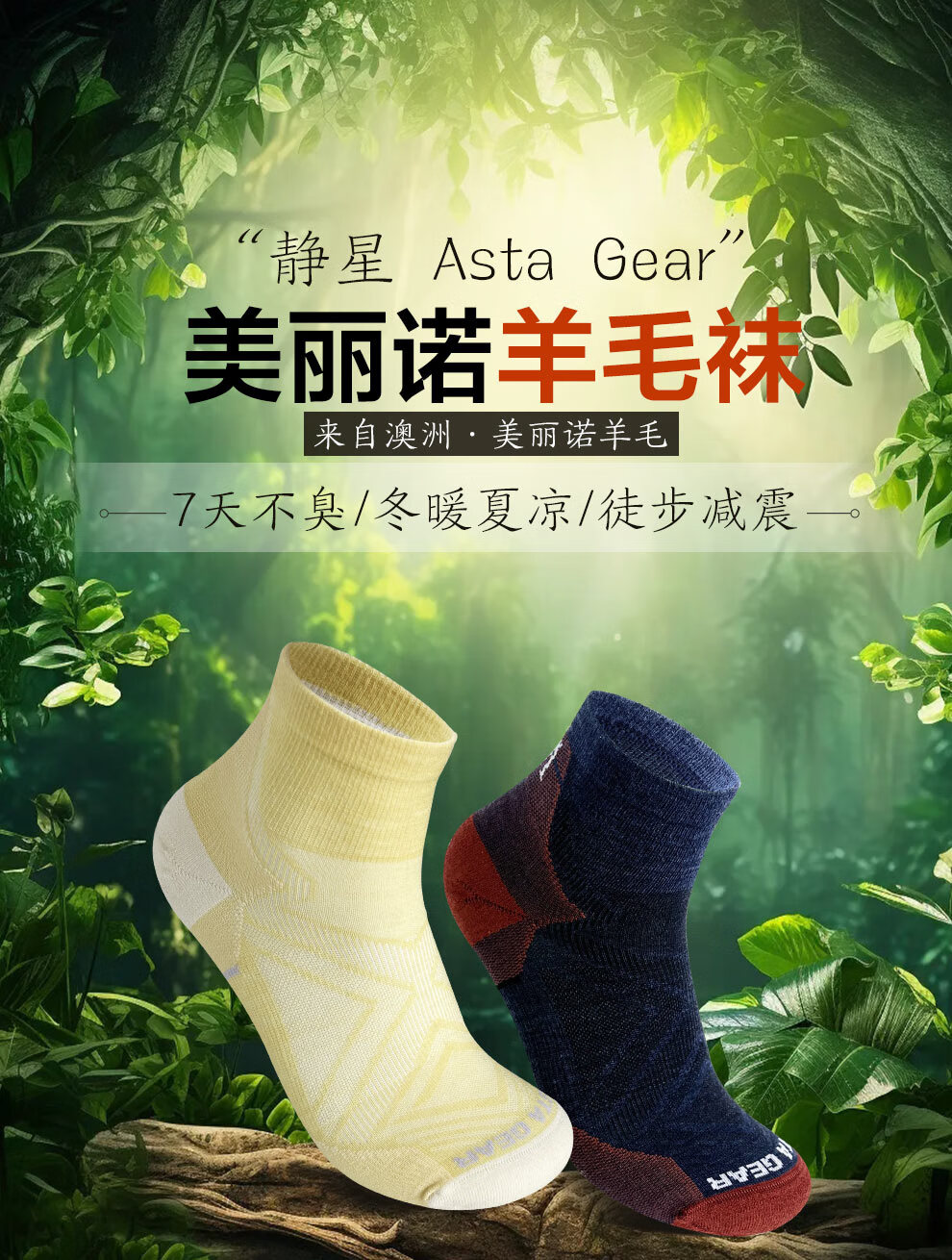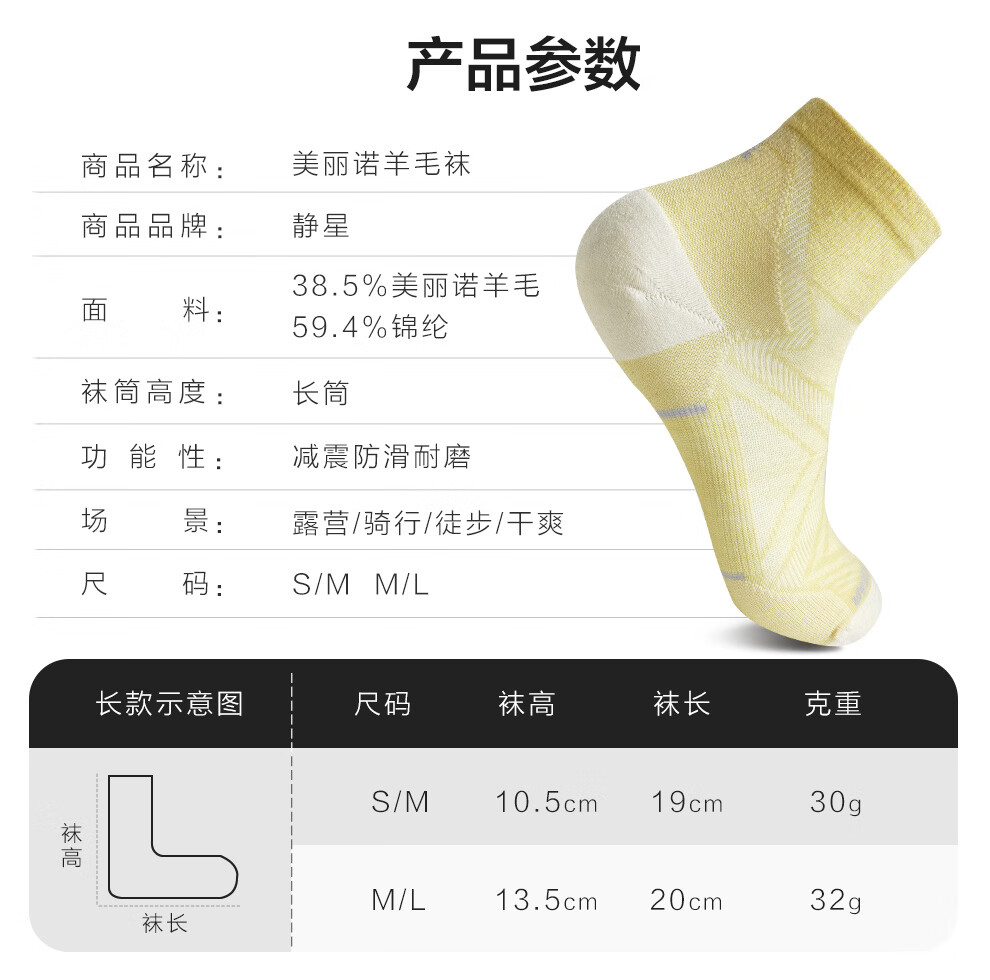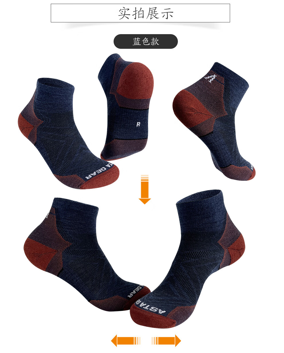 静星静星美丽诺羊毛袜夏款户外滑雪登山徒步袜爬山男女中筒春夏跑步袜 蓝色款夏季透气防臭M/L(38-43)