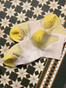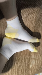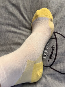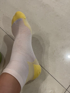 袜子很厚实,脚跟和脚趾毛巾底的,有减震作用,穿着徒步不会脚疼了,骑车也可以穿,这个配色我也很喜欢,价格很实惠,再多出几个配色可以选就更好了