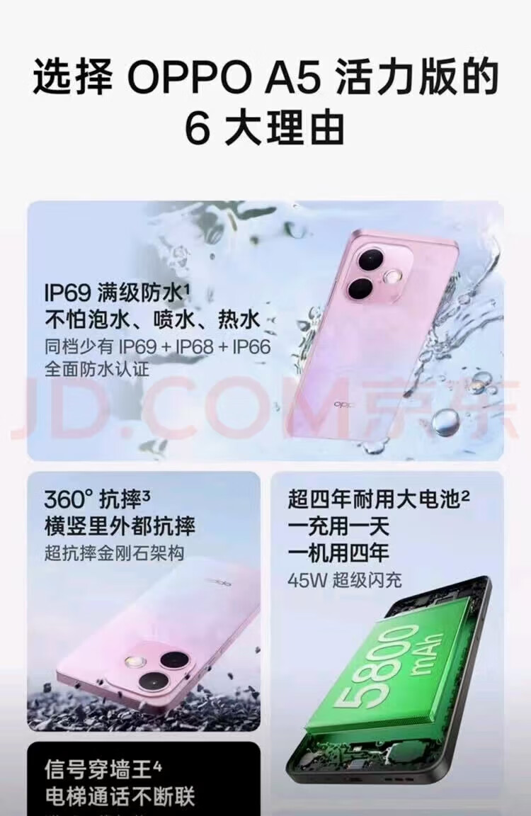 OPPOA5 活力版 IP69满级防水 360°抗摔 5G展机 超四年耐用大电池手机 琥珀黑 12GB+512GB 单机+原装快充+店保一年