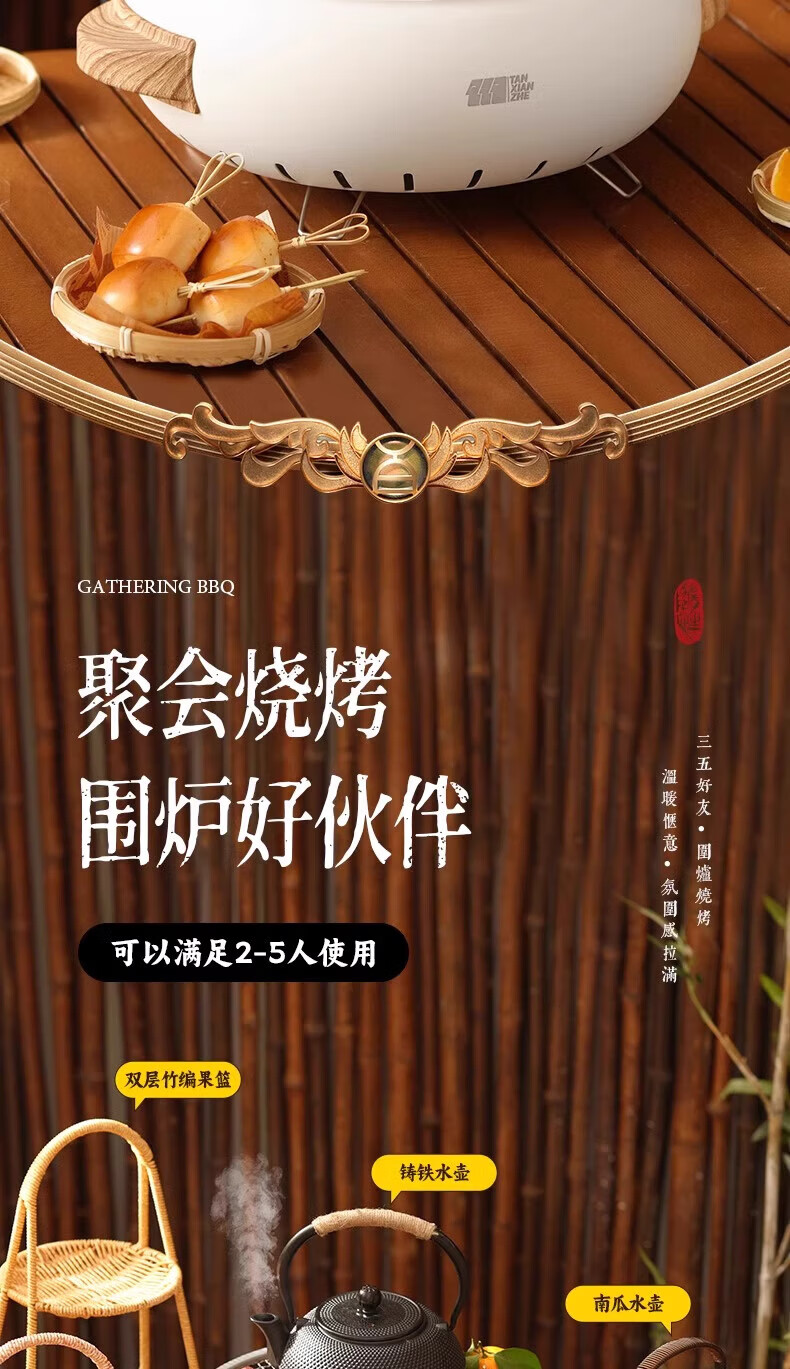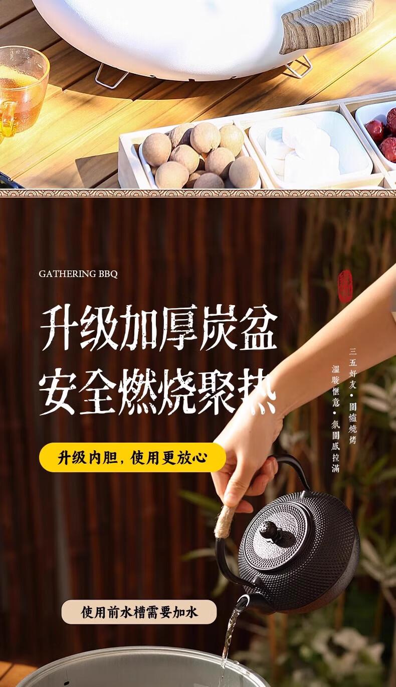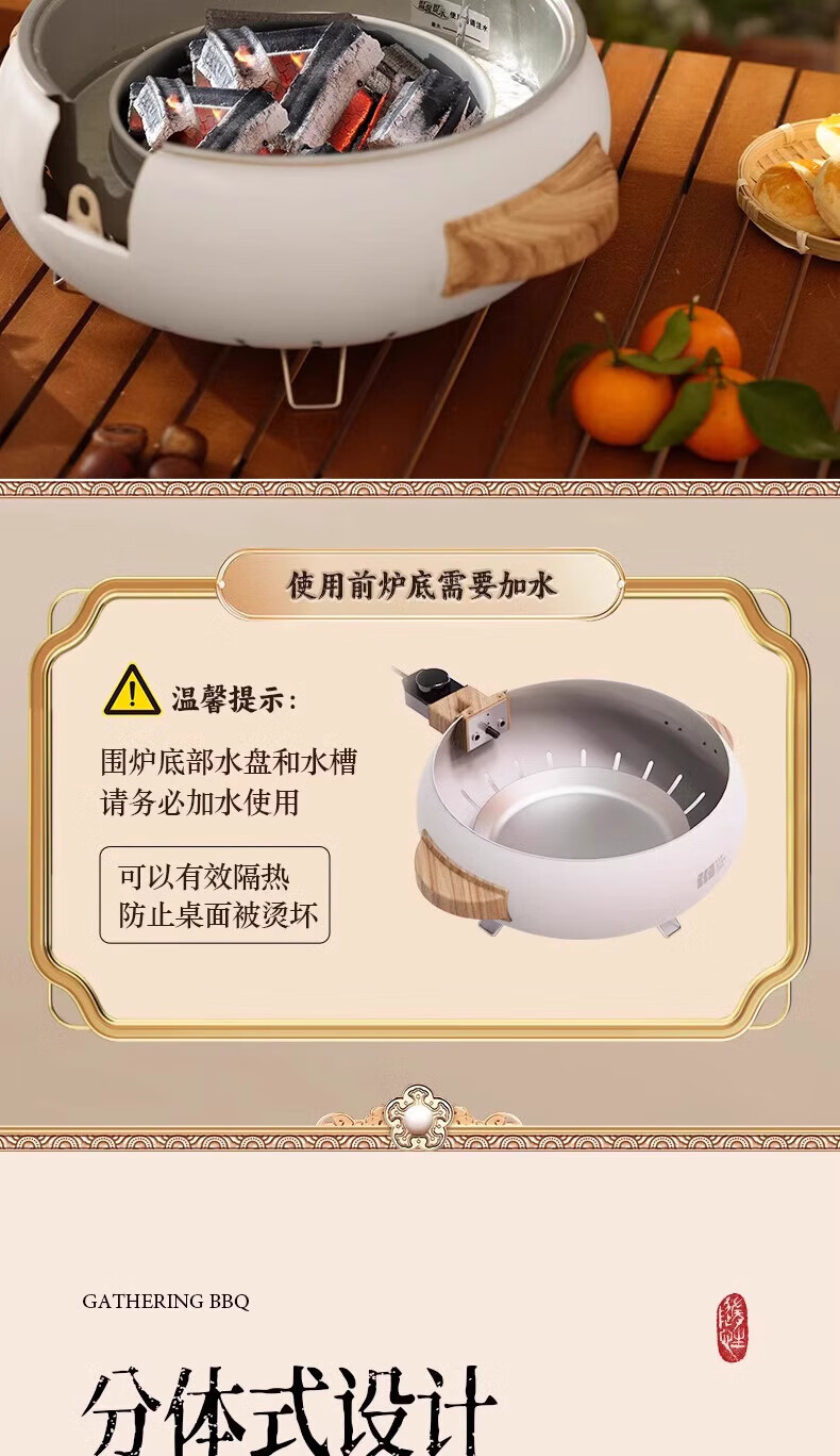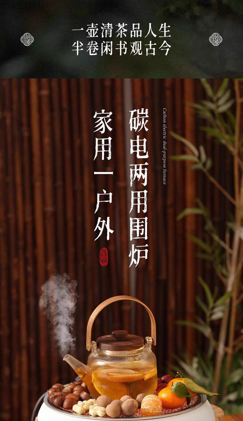 桌子质感很不错,在户外应该会更出片,自己可以烧炭围炉煮茶,或者直接插电使用!挺好的,一家子暖暖的围着一起喝茶,在哪里都很方便,这次国庆就是用这个的还可以挺安全的家里也可以用户也可以用~