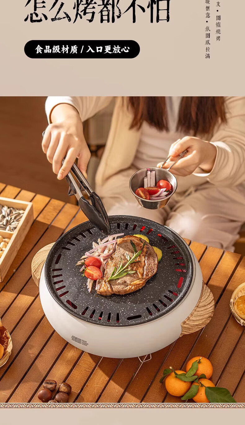 收了货马上上桌测试,隔热效果不错,炉身温度很低对桌面没影响,不用担心烧坏家里的餐桌了。烤起来也非常方便,也不用再去外面的店里买团购套餐了。商品非常经济实惠,下次还在你们家买!