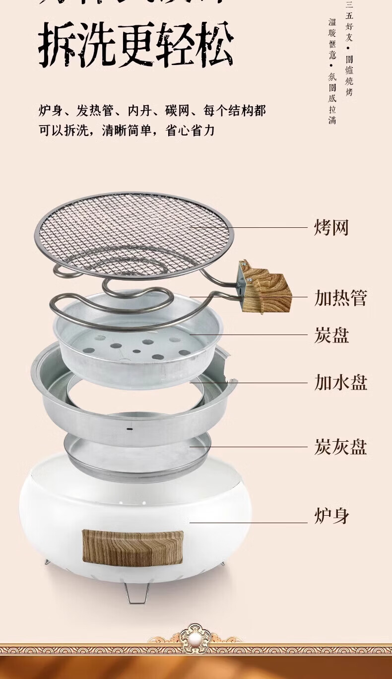 探险者探险者烧烤炉户外庭院烤炉围炉煮茶果木炭烧烤炉家用电炭两用围炉 电炭两用围炉(烤网)+收纳包