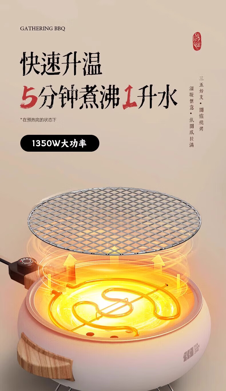 探险者(TAN XIAN ZHE)新品围炉煮茶电炉烤火炉套装器具全套新年礼盒2024新款家用 【烤网款】1.5kw极速加热电陶炉