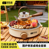 探险者(TAN XIAN ZHE)户外煮茶烧水一体无烟电炉便携式烧水壶旅行茶具露营折叠桌椅全套 电围炉+收纳袋+120款桌+4*月亮椅