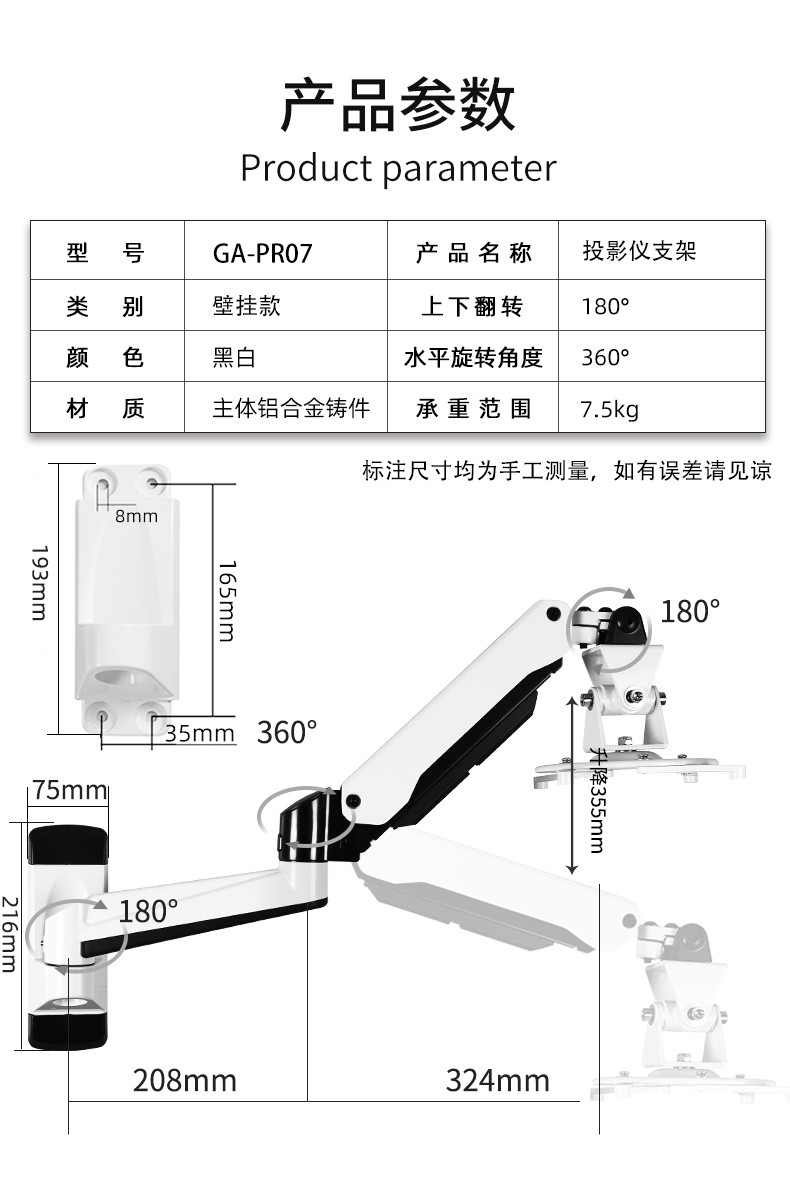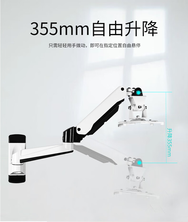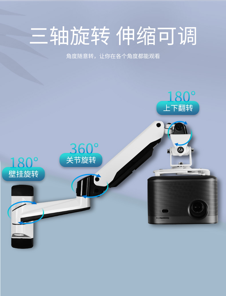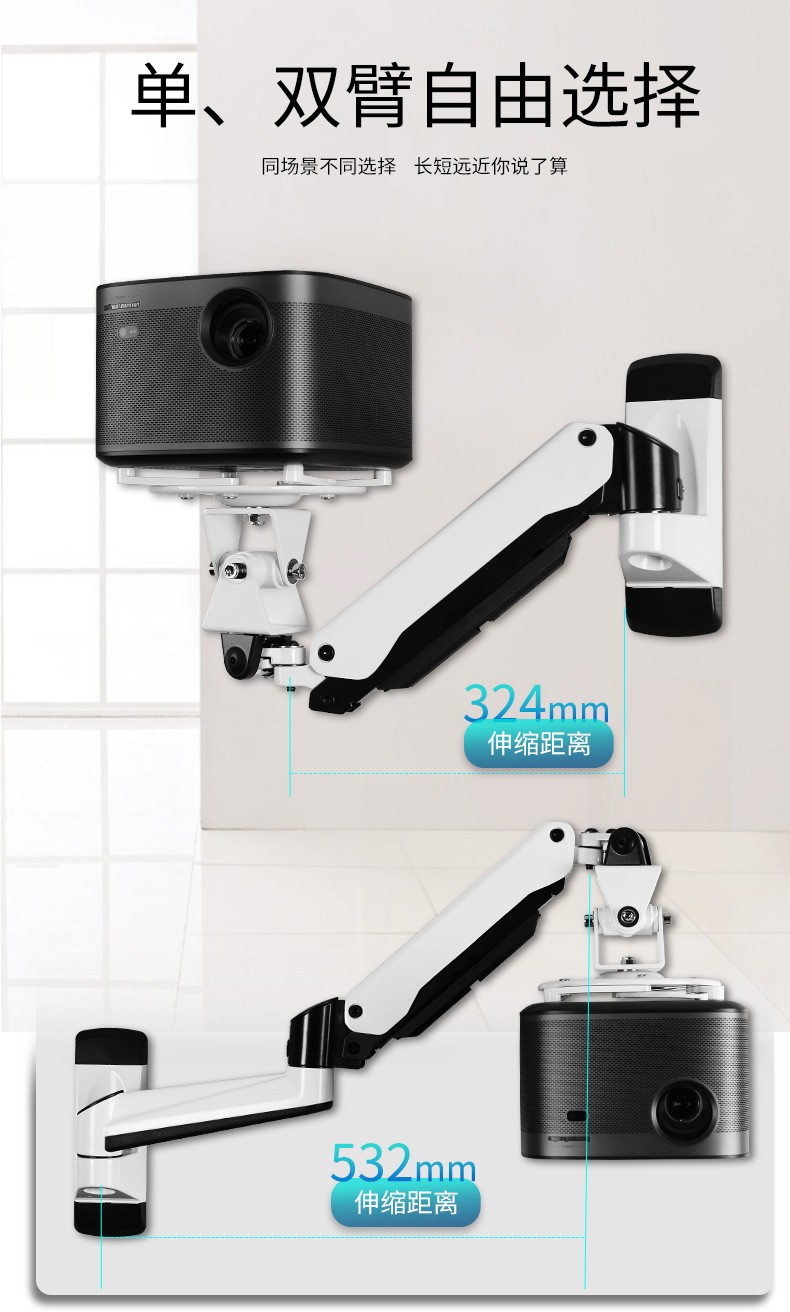 很棒啊!因对尺寸没有把握,故此买了二节臂,到手比划一下,一节臂足够使用,左右,上下,旋转很灵活,很方便调整投影仪,太完美了。