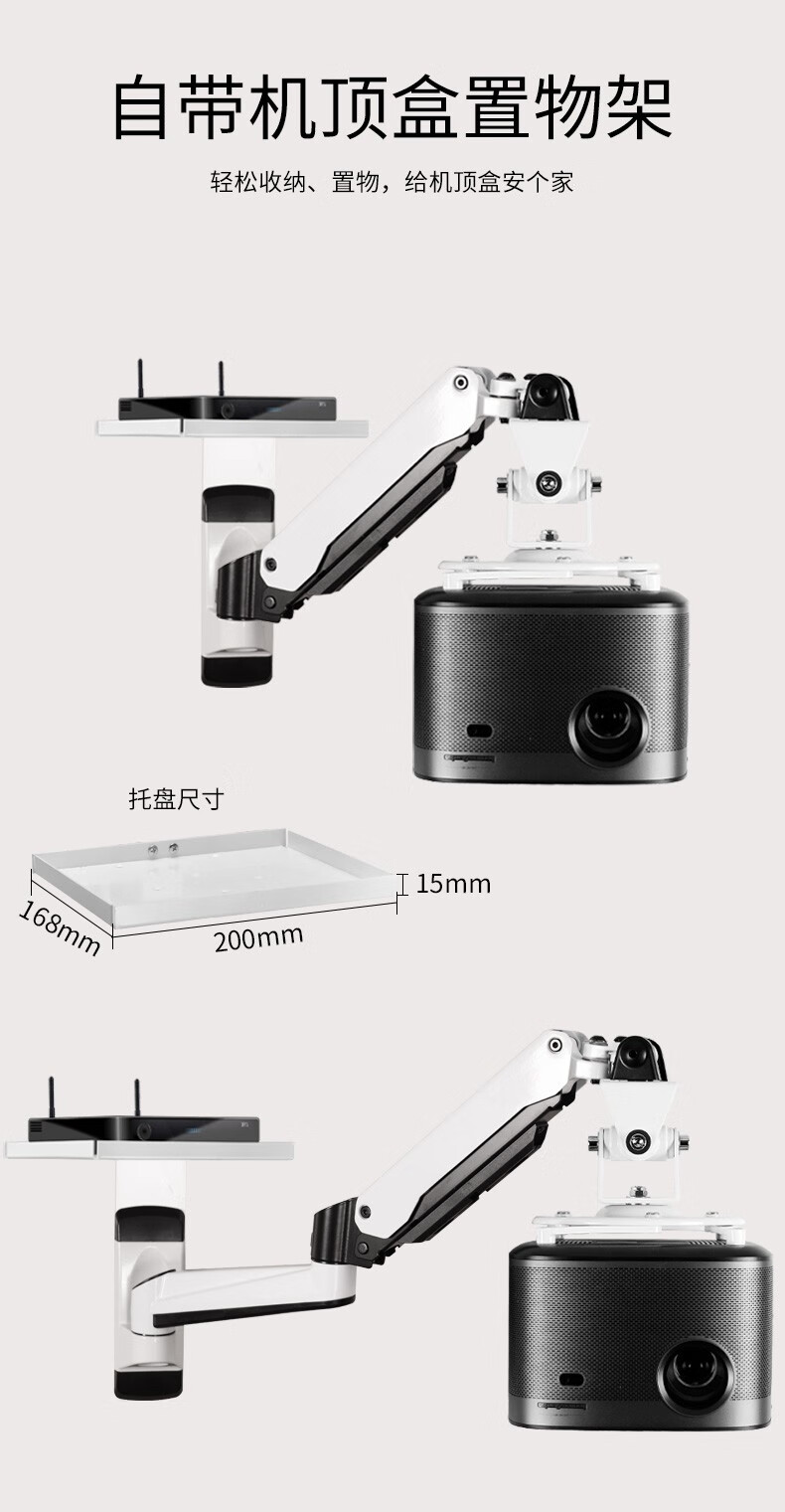 架子很结实,很好用,我们的投影仪一万多块,当初就是想着买一个结实耐用的,不然十几斤的投影仪那敢放上去哇,这款架子看了很久才下单,很超乎想象,好评,推荐哟。看着用料就很足,很物超所值。