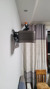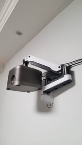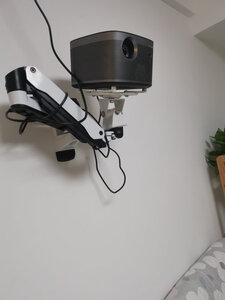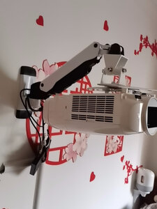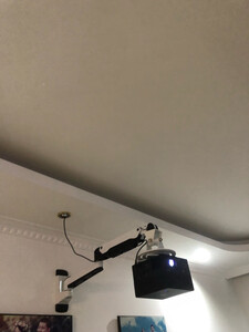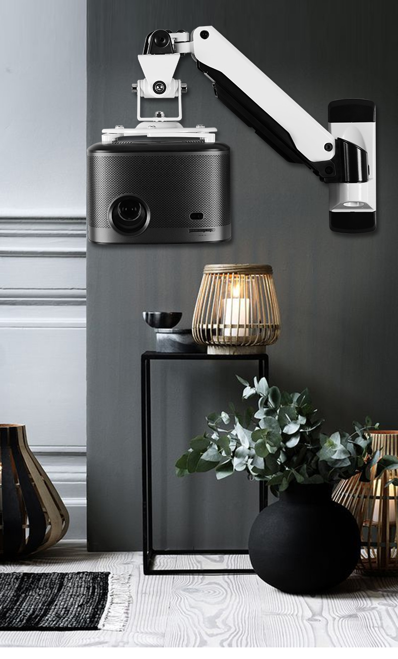 从物业借了一个冲击钻,用十个的钻头打的眼儿,上的紧紧的,这个摇臂又结实又漂亮,上下左右随便调,前提是用六棱扳子把阻尼调好,这个摇臂是投影仪上墙的首选,配上我新上市的极米H6……买了10米的HDMI2.1光线接上电脑主机,呆在我的小卧室里哪都不想去了。