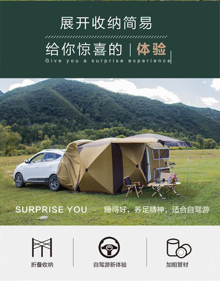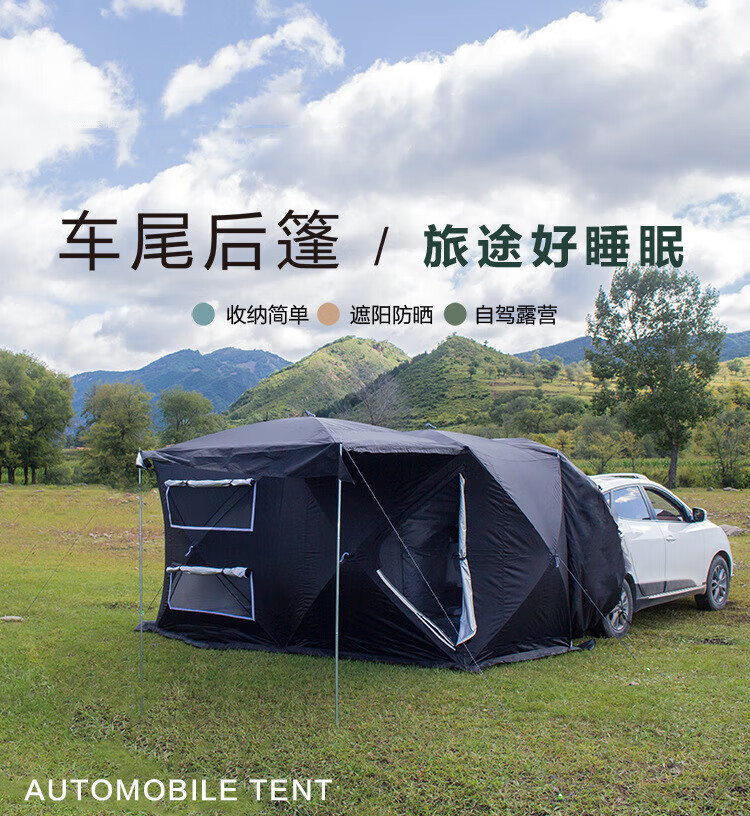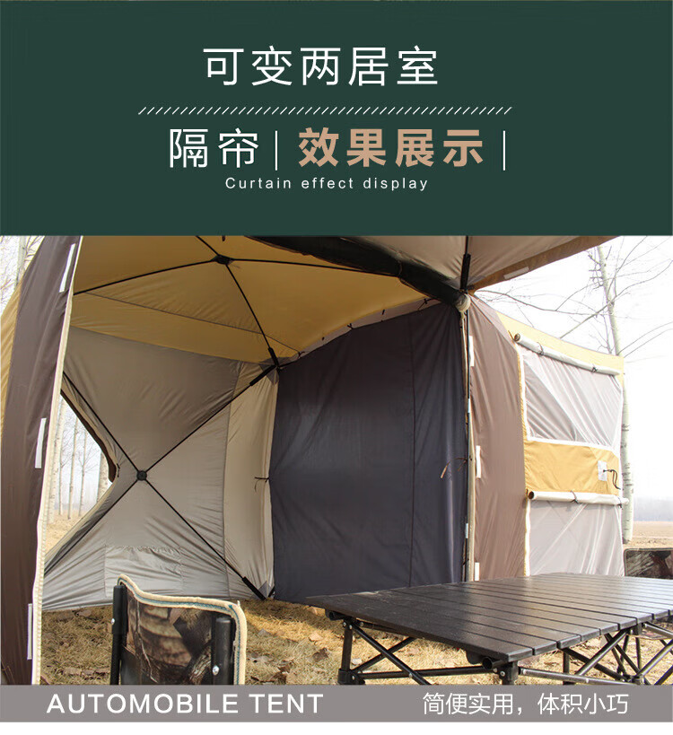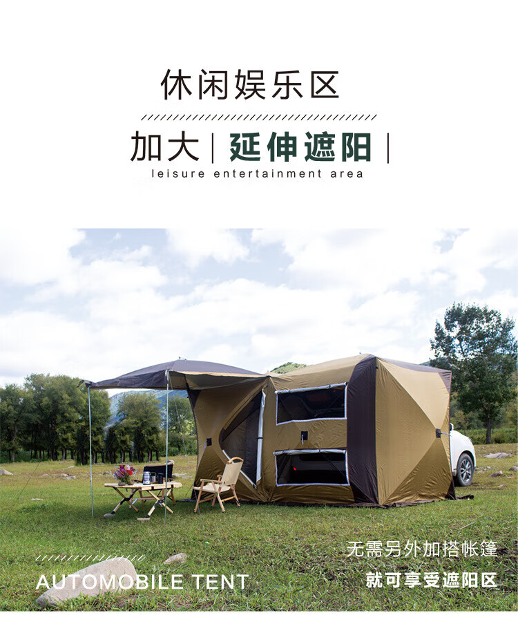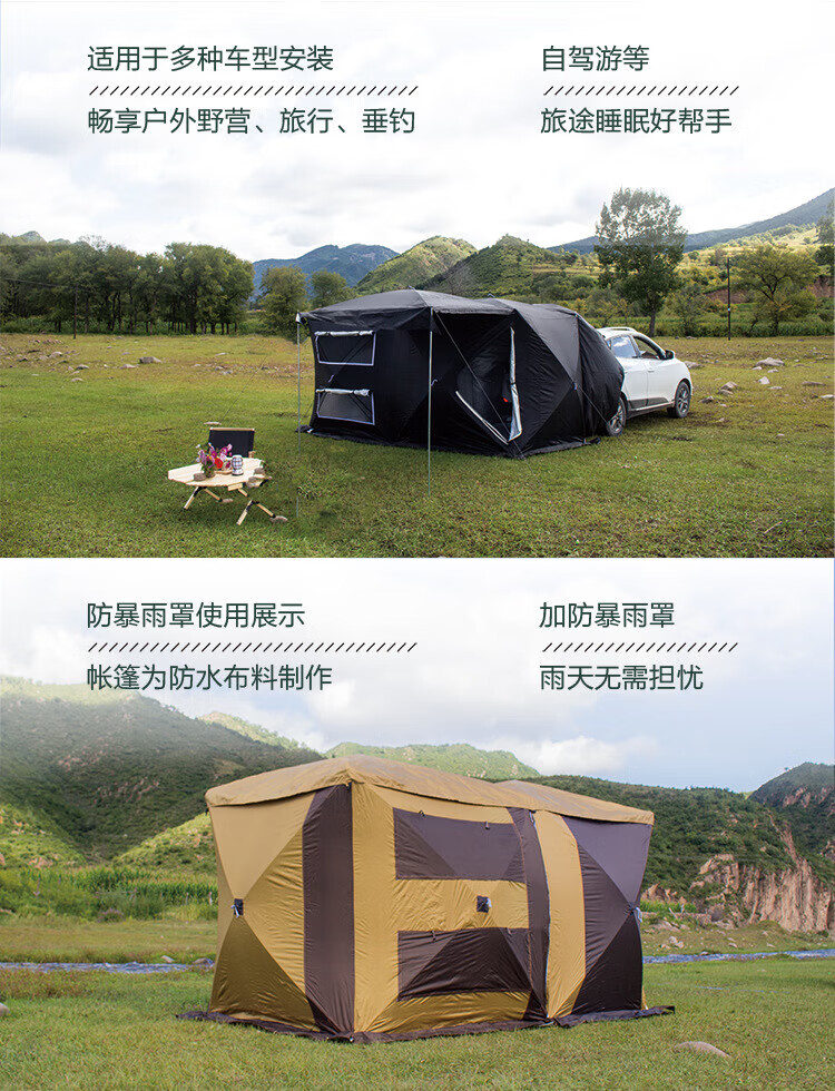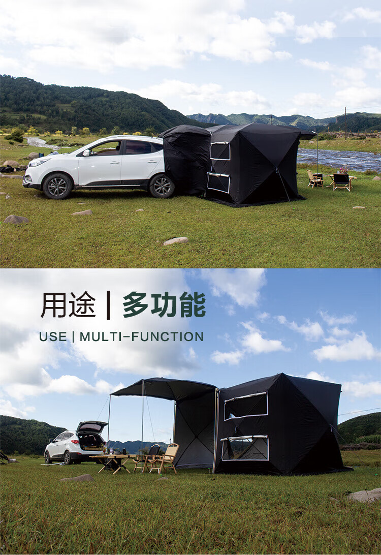 户外多功能汽车延伸车尾帐篷自驾游野露营越野车后备箱车载防晒 暖灰色