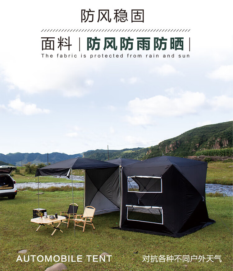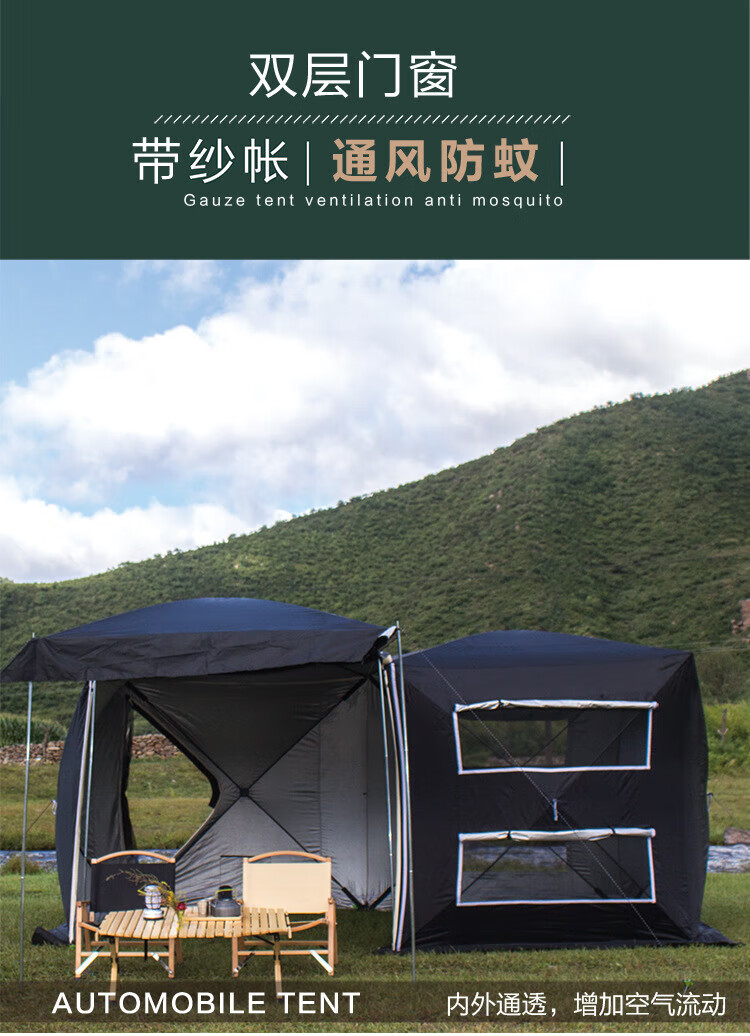 户外露营车营地车雨棚雨罩防水防雨挡风棚保温防沙尘蚊帐防蚊通用 主图款