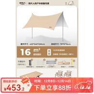 原始人天幕户外露营桌椅六件套野营大号防晒免搭银胶遮阳棚 16㎡精致露营套装
