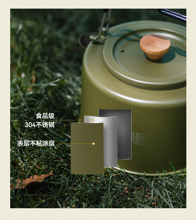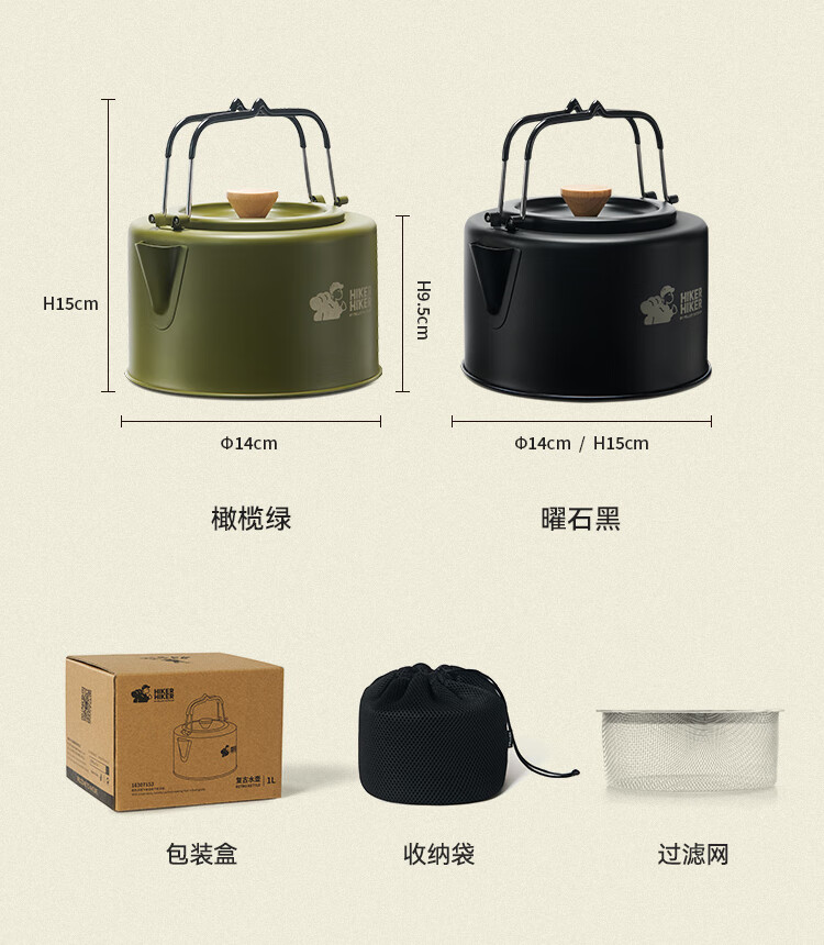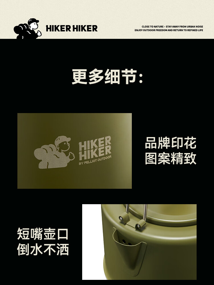 伯希和(Pelliot)HIKER HIKER系列烧水壶户外露营便携保温泡茶野餐喝茶用品 橄榄绿