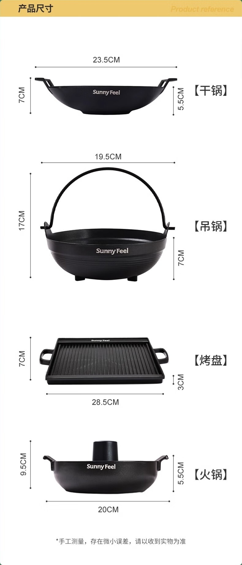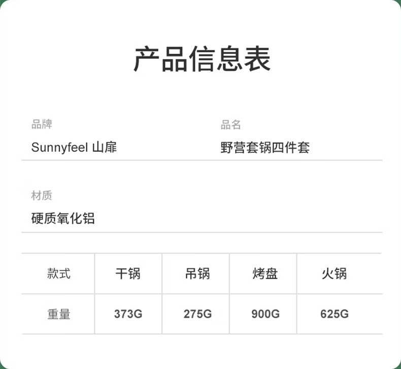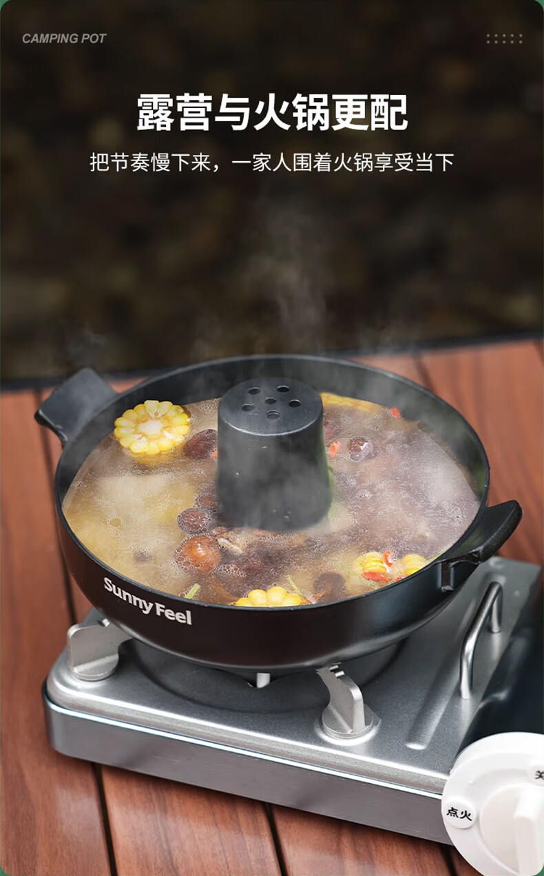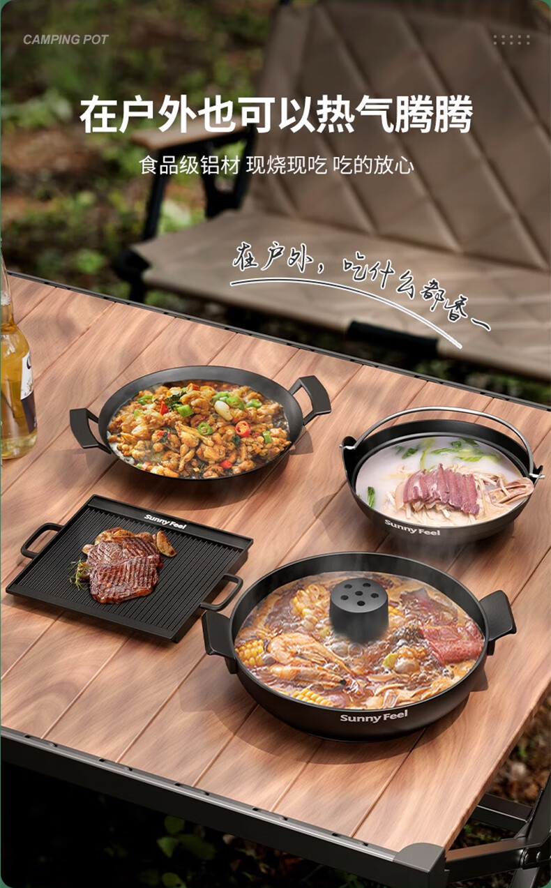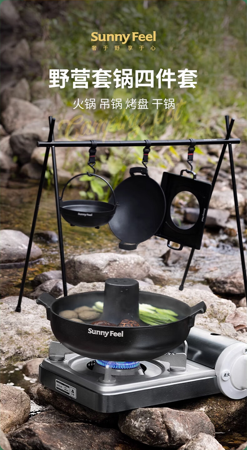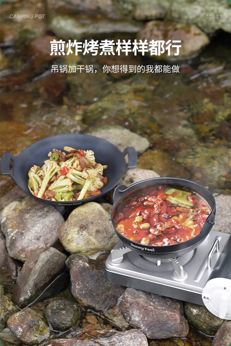 山扉(sunnyfeel)山扉野营套锅户外锅具便携烧水炉野餐锅干锅露营火锅炉烤盘吊锅 干锅