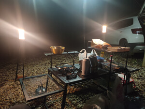 安装全部模块化,位置可以根据自己的需要做些调整。颜值高,用料扎实,一张户外小桌放了两个炉子,擎天炉的安装按照客服的指引无缝对接到了桌板,非常实用。三家人,连烧带烤,都能够很好的满足,成了聚会的小亮点。