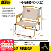 探险者户外折叠椅克米特椅露营折叠椅子月亮椅便携桌子椅钓鱼椅 卡其中号克米特椅(树脂扶手)