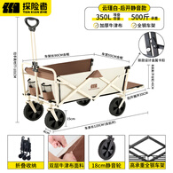 探险者露营车推车户外野餐营地快递车折叠聚拢旅行手拉车便携野营拖车 卡其露营车聚拢款+越野轮