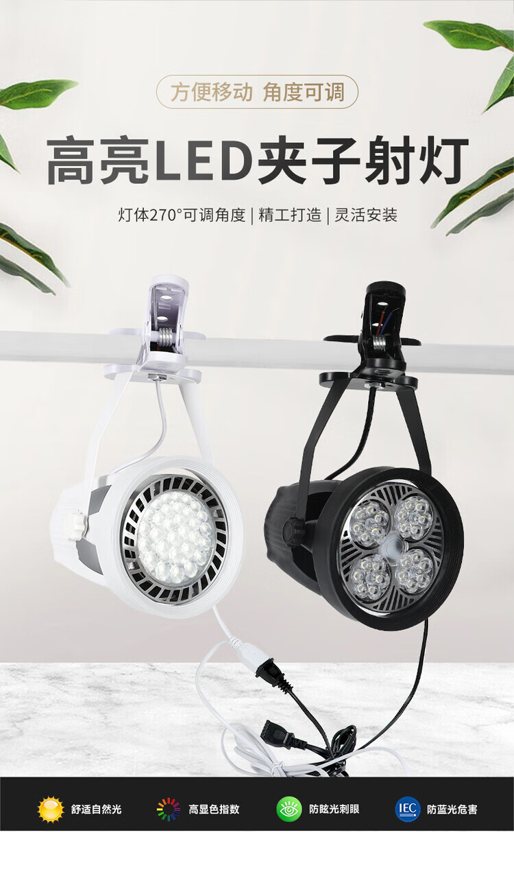 语森忆led夹子射灯超亮移动聚光串联展会插电集市摆摊露营灯 芯片25W暖黄+2米开关线(可串联)