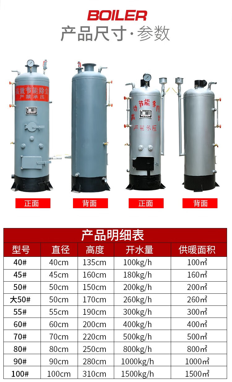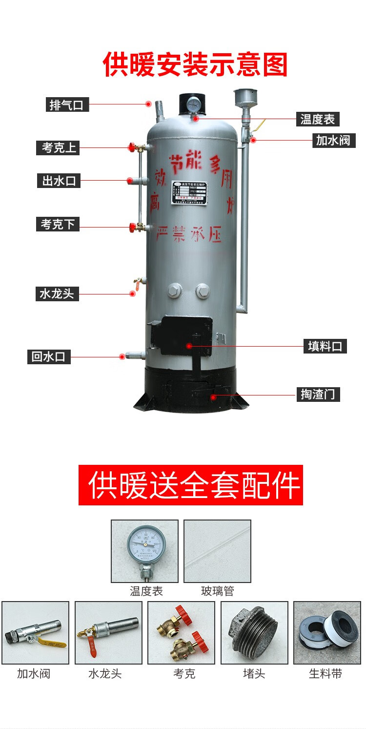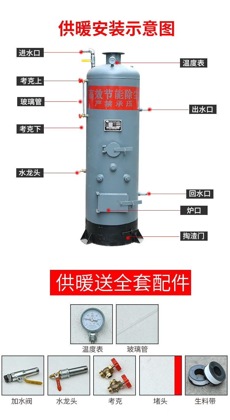 仕夕烁 蒸汽锅炉商用供暖取暖地暖锅炉烧柴燃煤热水家用酿酒蒸酒蒸馒头 加厚60型蒸汽取暖两用节能锅炉