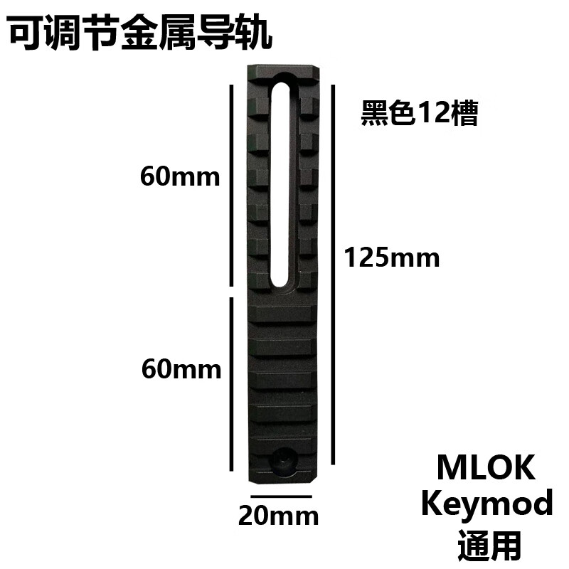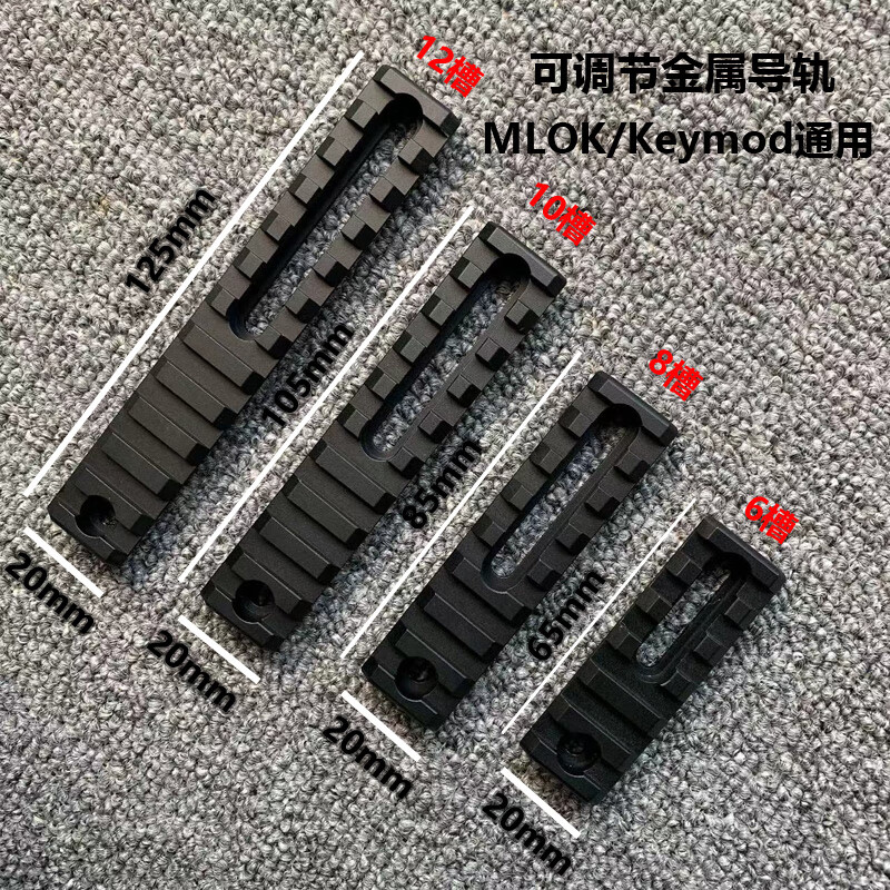 军迷用品 金属导轨片MLOK/Keymod导轨20mm通用SR16精击SLR 6槽金属导轨 Mlok/Keymod系统黑