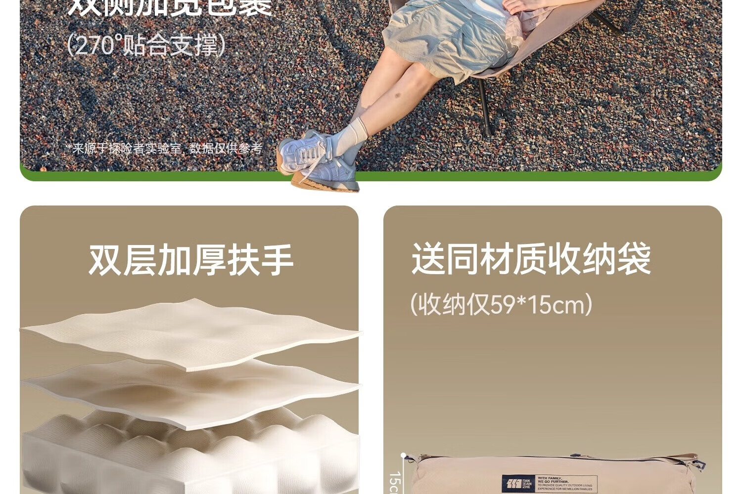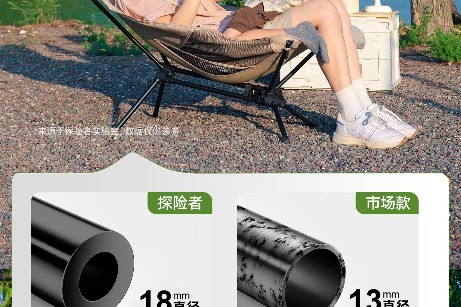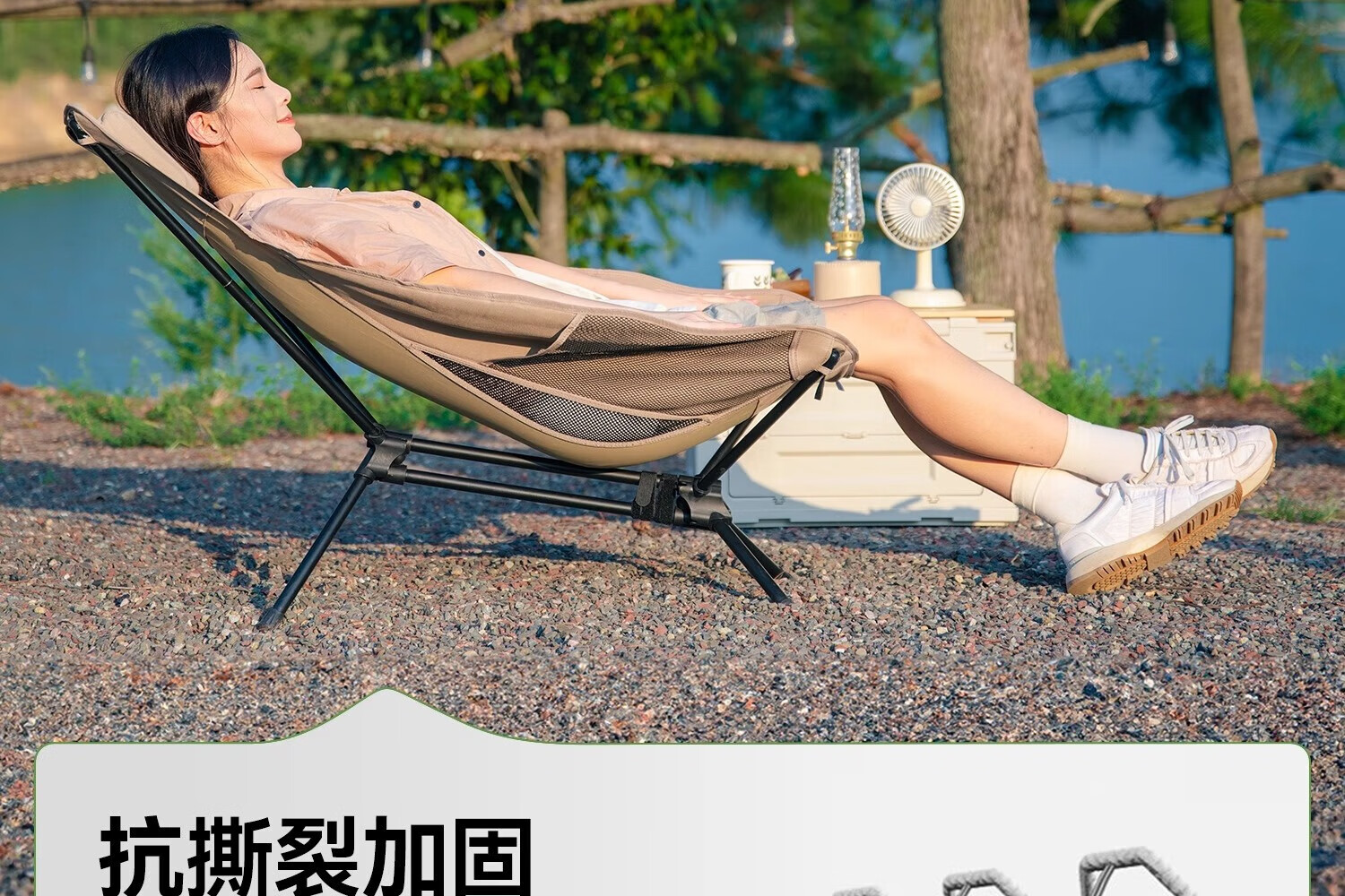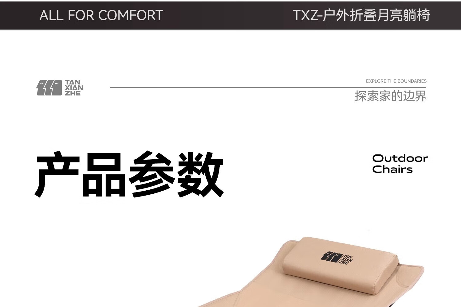 探险者(TAN XIAN ZHE)户外折叠椅子可躺可睡月亮椅躺椅露营折叠桌椅全套装备便携沙滩椅 【全椅充棉】三档升级款-卡其色