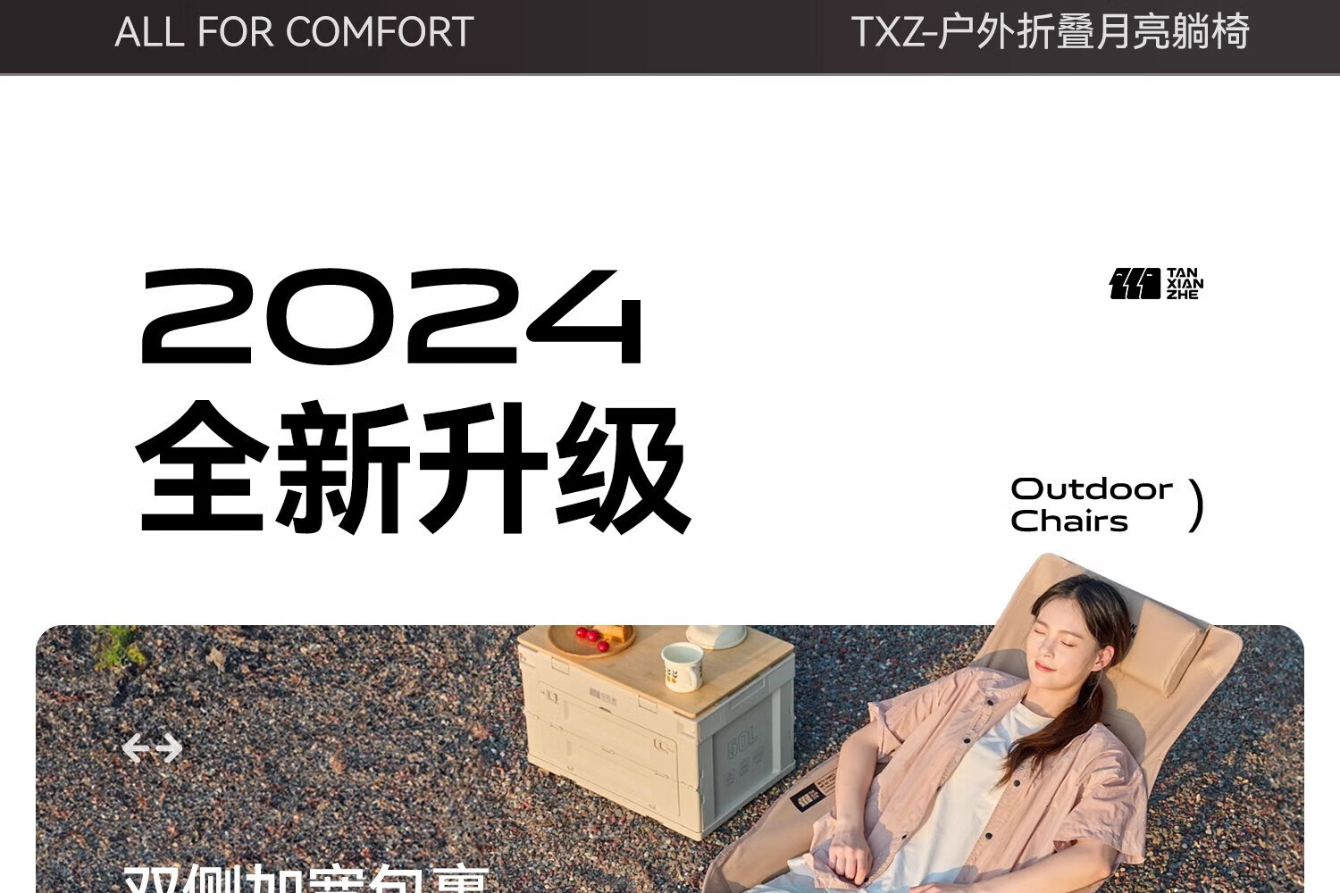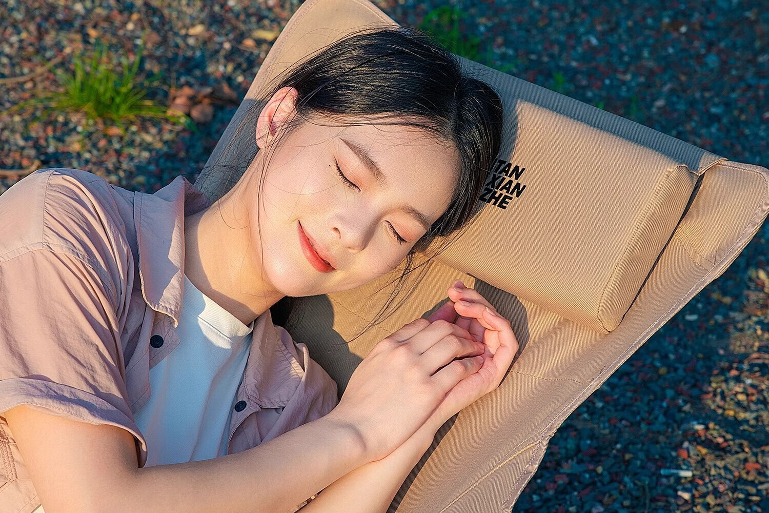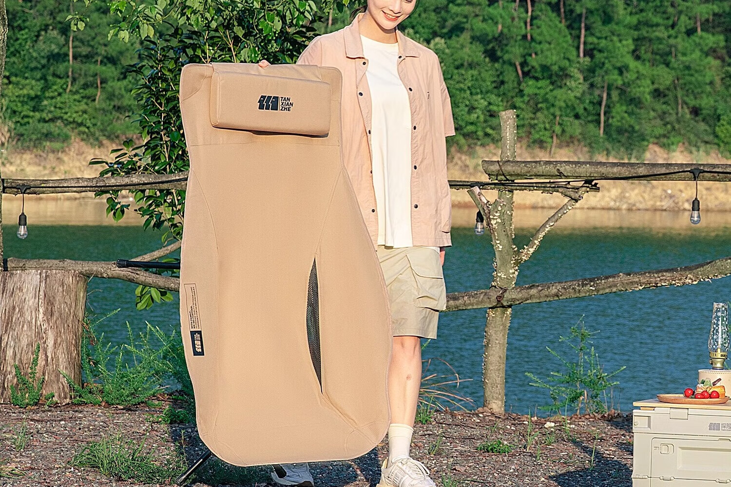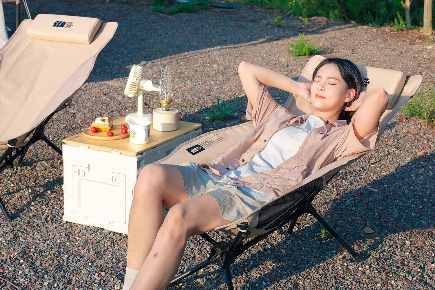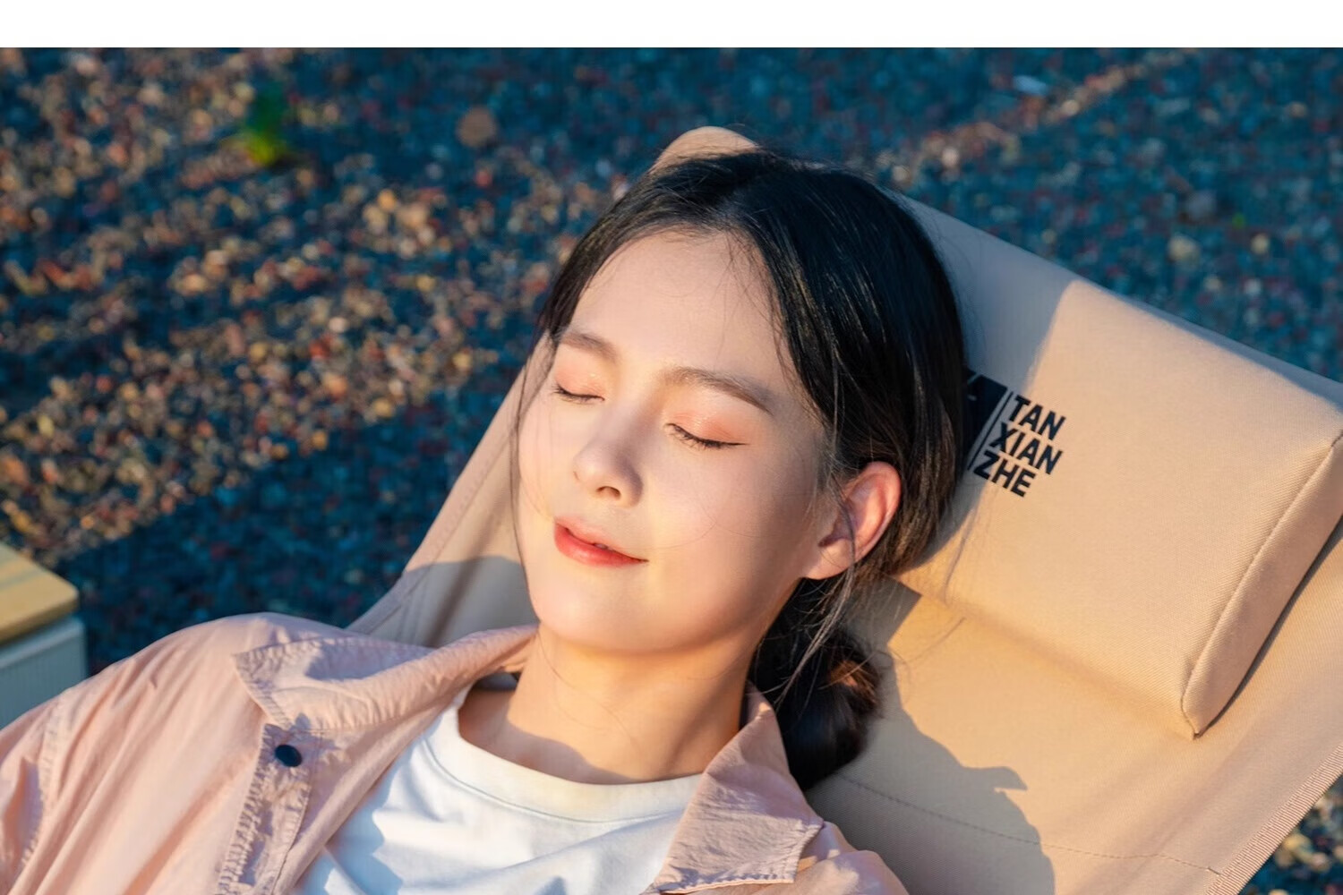探险者(TAN XIAN ZHE)户外折叠椅子可躺可睡月亮椅躺椅露营折叠桌椅全套装备便携沙滩椅 【全椅充棉】三档升级款-卡其色