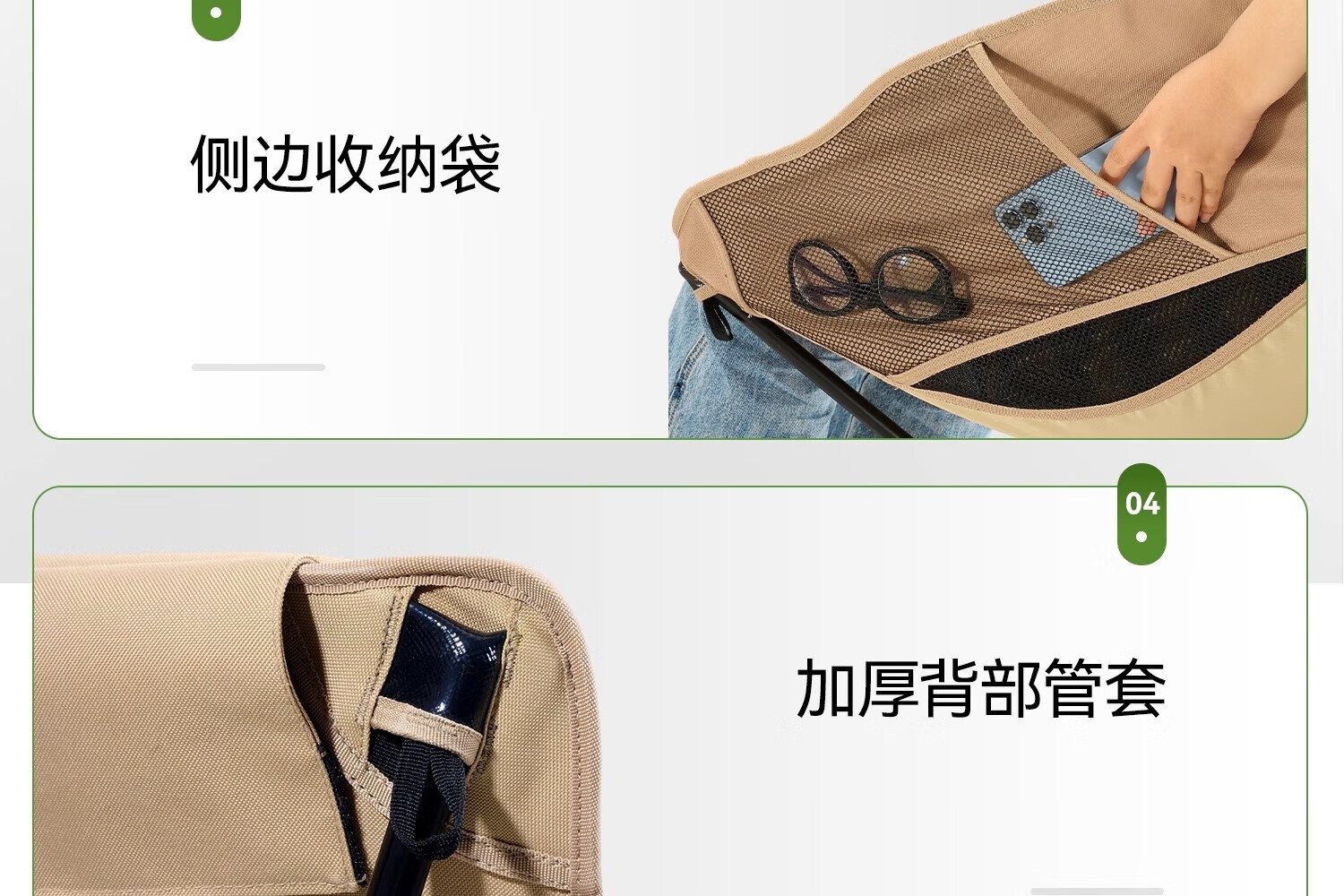 NatureHike挪客户外便携折叠椅 休靠背椅 旅游露营钓鱼休闲椅子超轻克米特椅 卡其色-小号