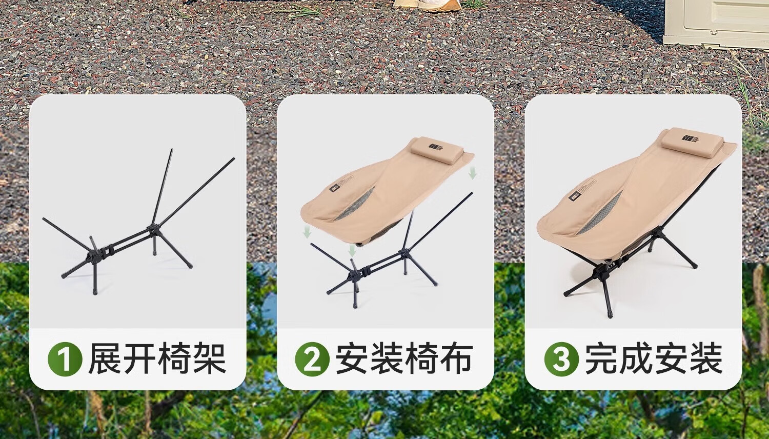 买回来不是太懂怎么安装,客服小姐姐也比较有耐心帮忙答疑解惑。商品的质量和重量还都比较靠谱,坐上去比较舒服,比较放松,适合家用也是个外出露营。