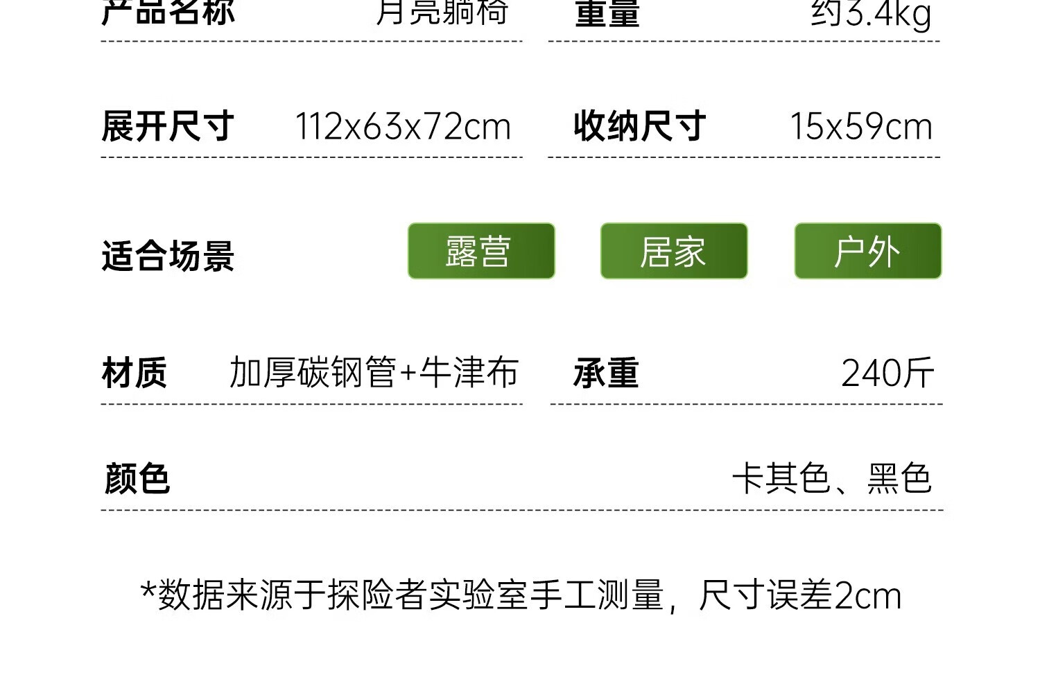 探险者户外折叠椅便携式躺椅月亮椅折叠沙滩椅碳钢超轻野餐露营椅子 【卡其色】月亮躺椅*2+收纳箱