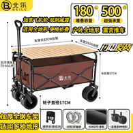 北乐户外露营折叠推车野餐野营野炊推车快递小拉车拖车露营装备全套 180L 有刹车 +【推车桌板】+咖啡色