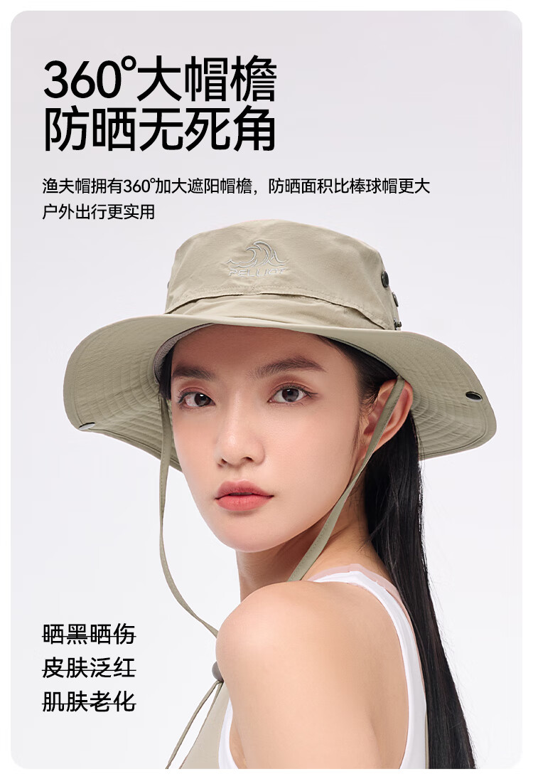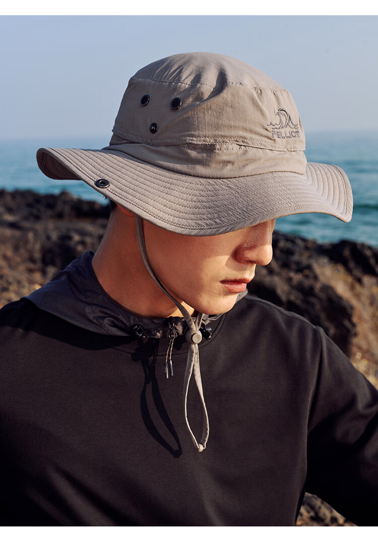 伯希和(Pelliot)户外防晒渔夫帽登山帽男女防紫外线夏季新款快干折叠帽子 灰色【帽围约60cm】