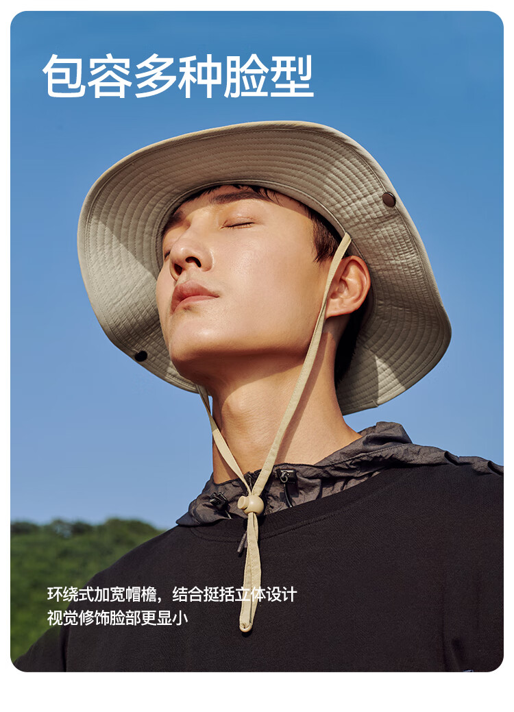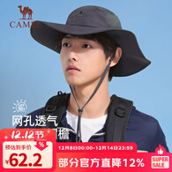 骆驼(CAMEL)户外防晒渔夫帽子男透气大帽檐遮脸遮阳帽女登山露营帽牛仔帽 远山灰,大帽檐防晒,133BAM2012-1