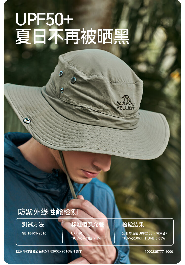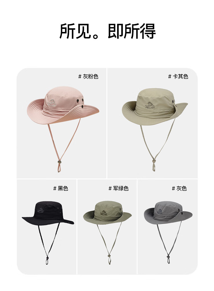 一直都买伯希和Pelliot的户外装备,支持国货,性价比很高。这款防紫外线快干折叠帽子也不错,面料透气,做工好,价格实惠,灰色也很百搭,夏日旅行必备。