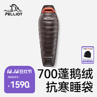 伯希和【启辰】户外羽绒睡袋700蓬鹅绒成人露营便携轻量化保暖 【曜石黑】400g鹅绒填充 M码