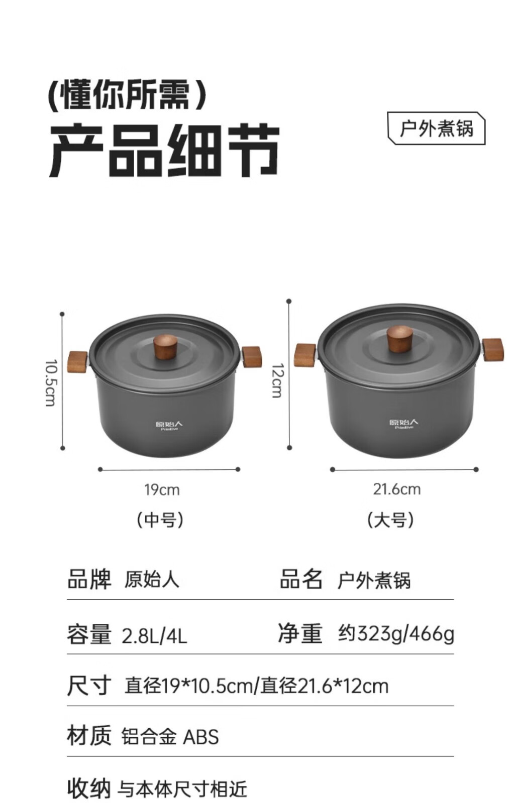 原始人户外锅具炊具露营野炊装备露营锅具便携煮锅套装全套套锅野餐锅 2.8L煮锅