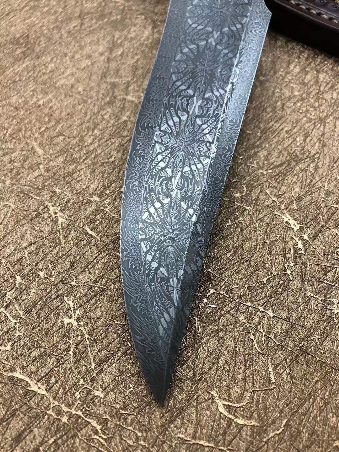 随风作户外刀锋利随身大马士革钢刀野外求生刀具防身高硬度千层花纹钢刀 月影