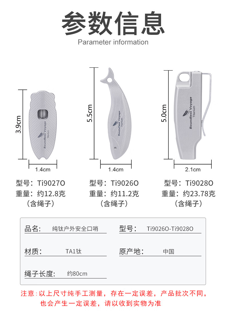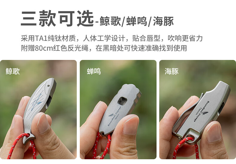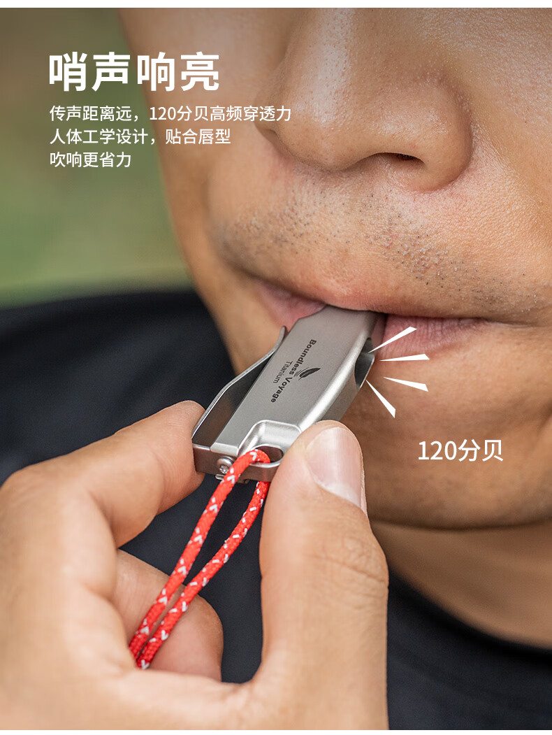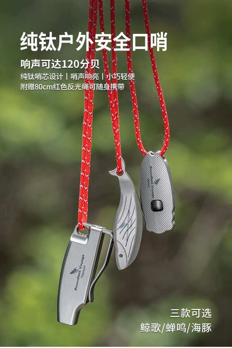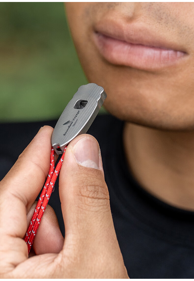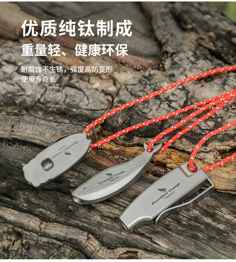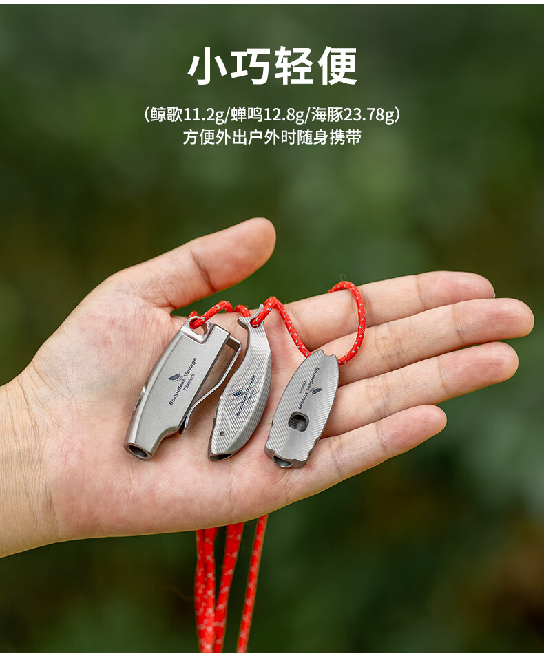 优质纯钛材质 颜色造型都酷 防腐蚀不生锈 重量轻 健康环保 小巧玲珑 适合佩戴 声音悦耳 非常适合野外徒步探索活动