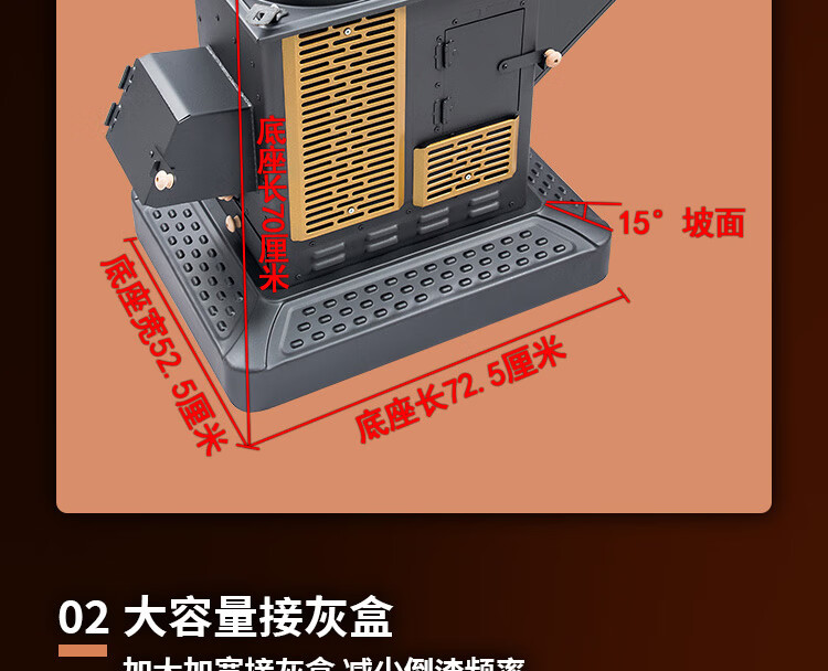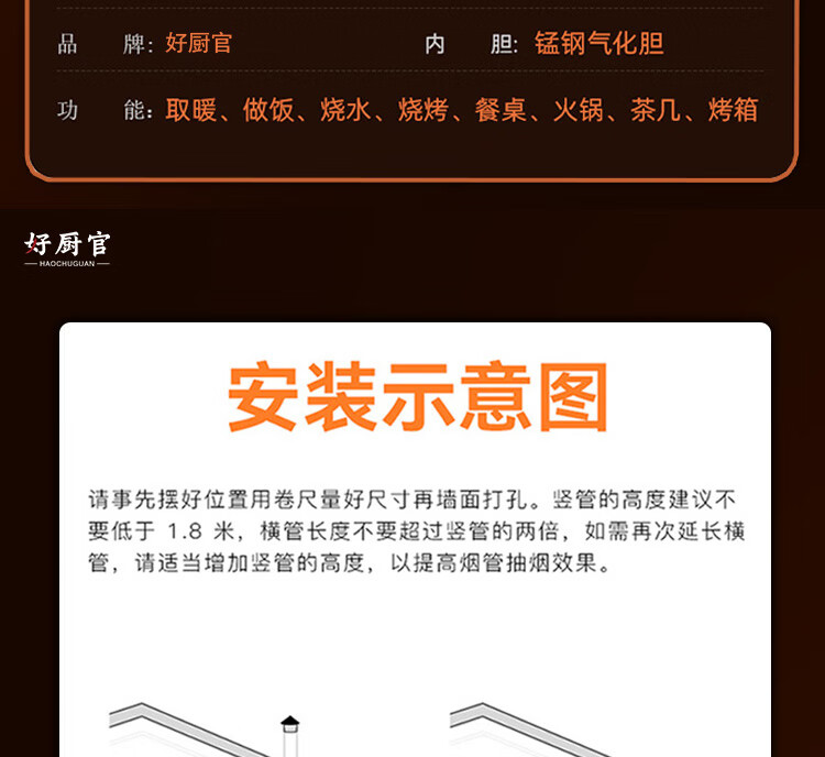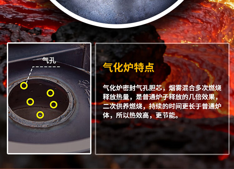 好厨官 三次燃烧无烟高端气化炉柴煤两用加厚烤火炉农村柴火灶取暖炉 0.8米防爆玻璃丨单桌面
