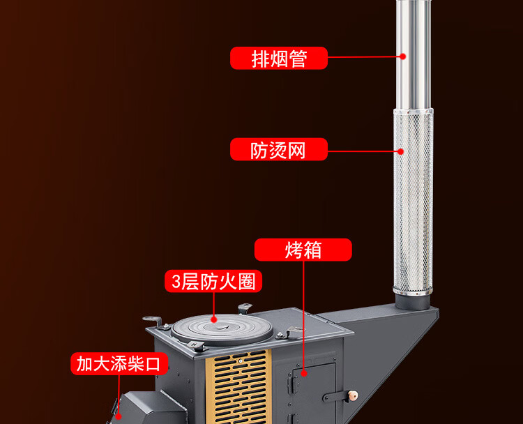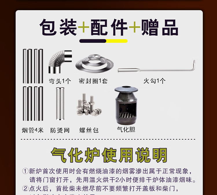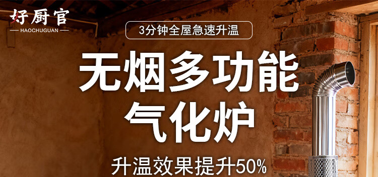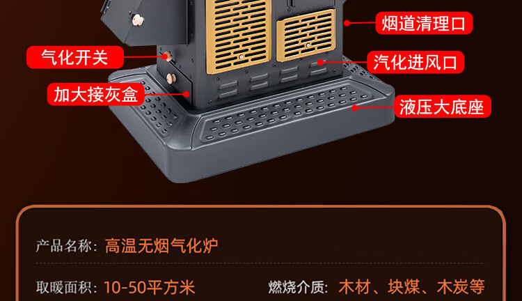 烽点2025新款气化炉室内取暖无烟柴火灶木柴煤炭通用农村家用大锅台 威天气化炉+3米管+40锅+配件